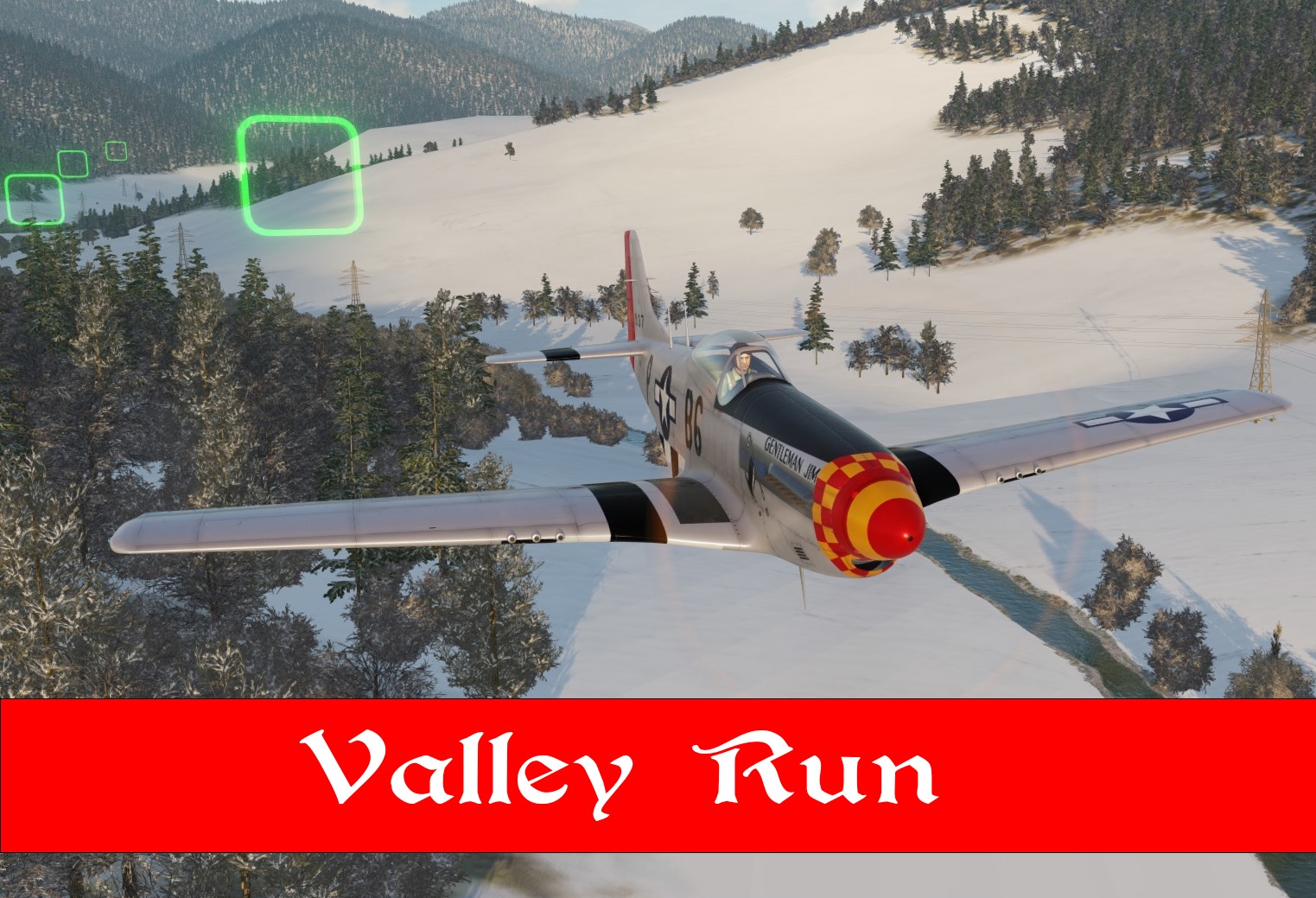 An edited version of the original 'Valley Run' Mission by ED. I modified it to use the free Tf-51D and made some changes to lighting and weather.