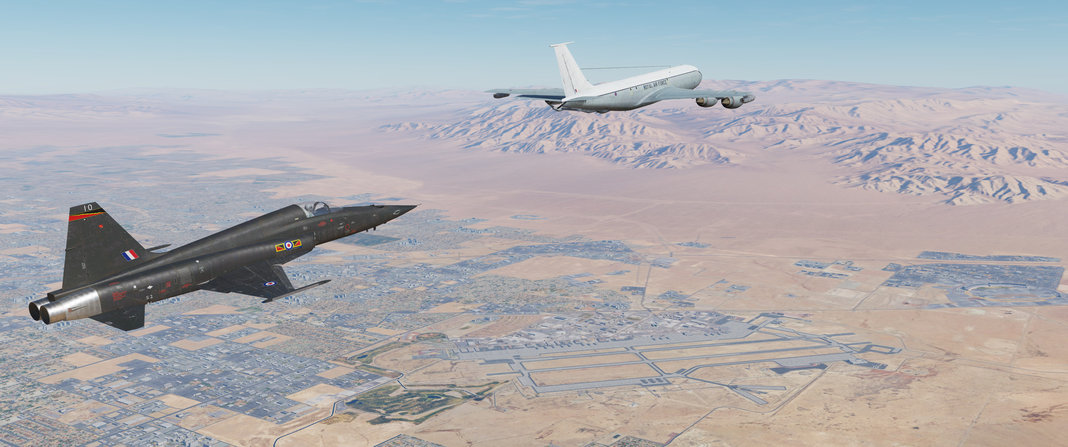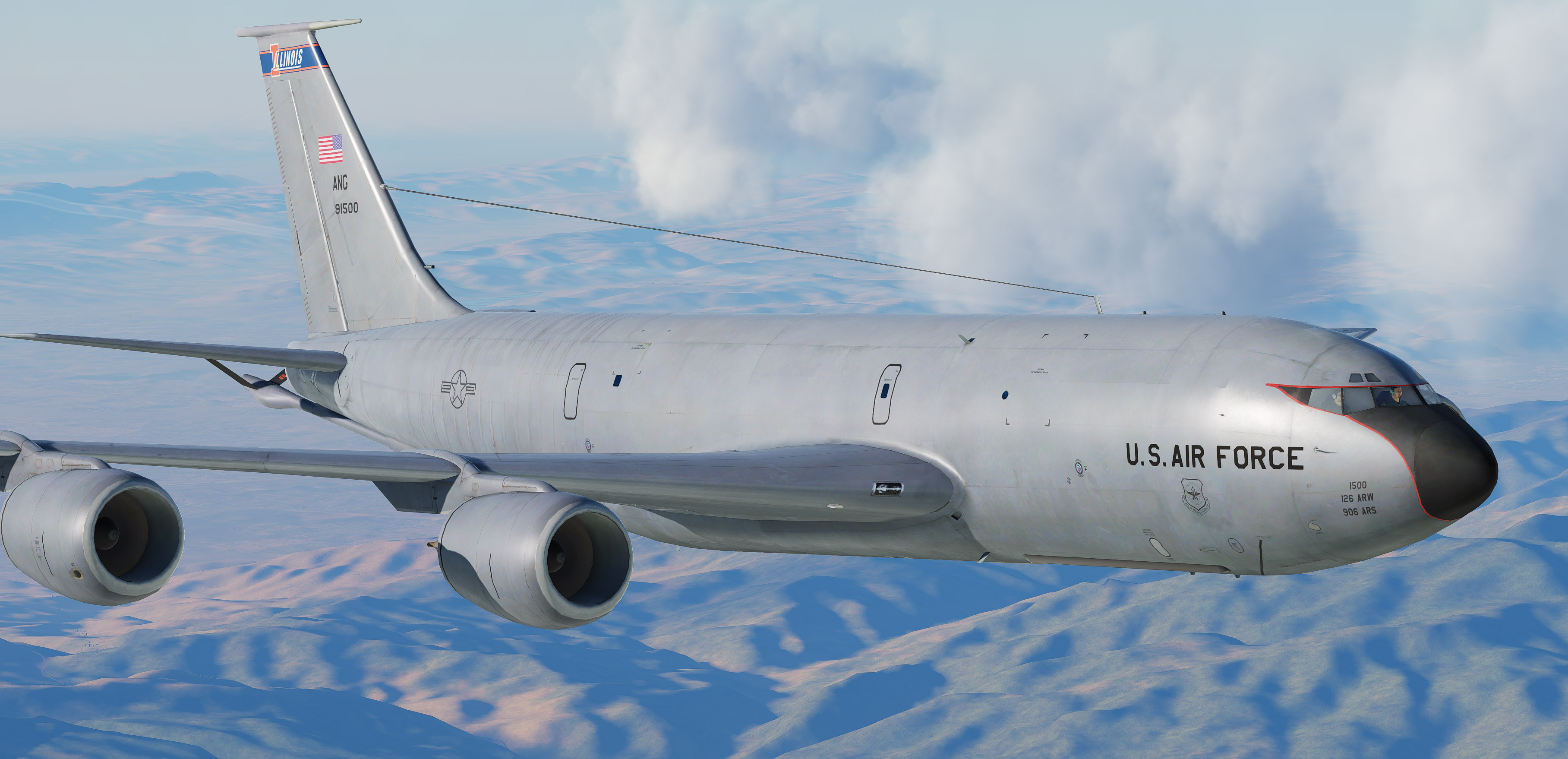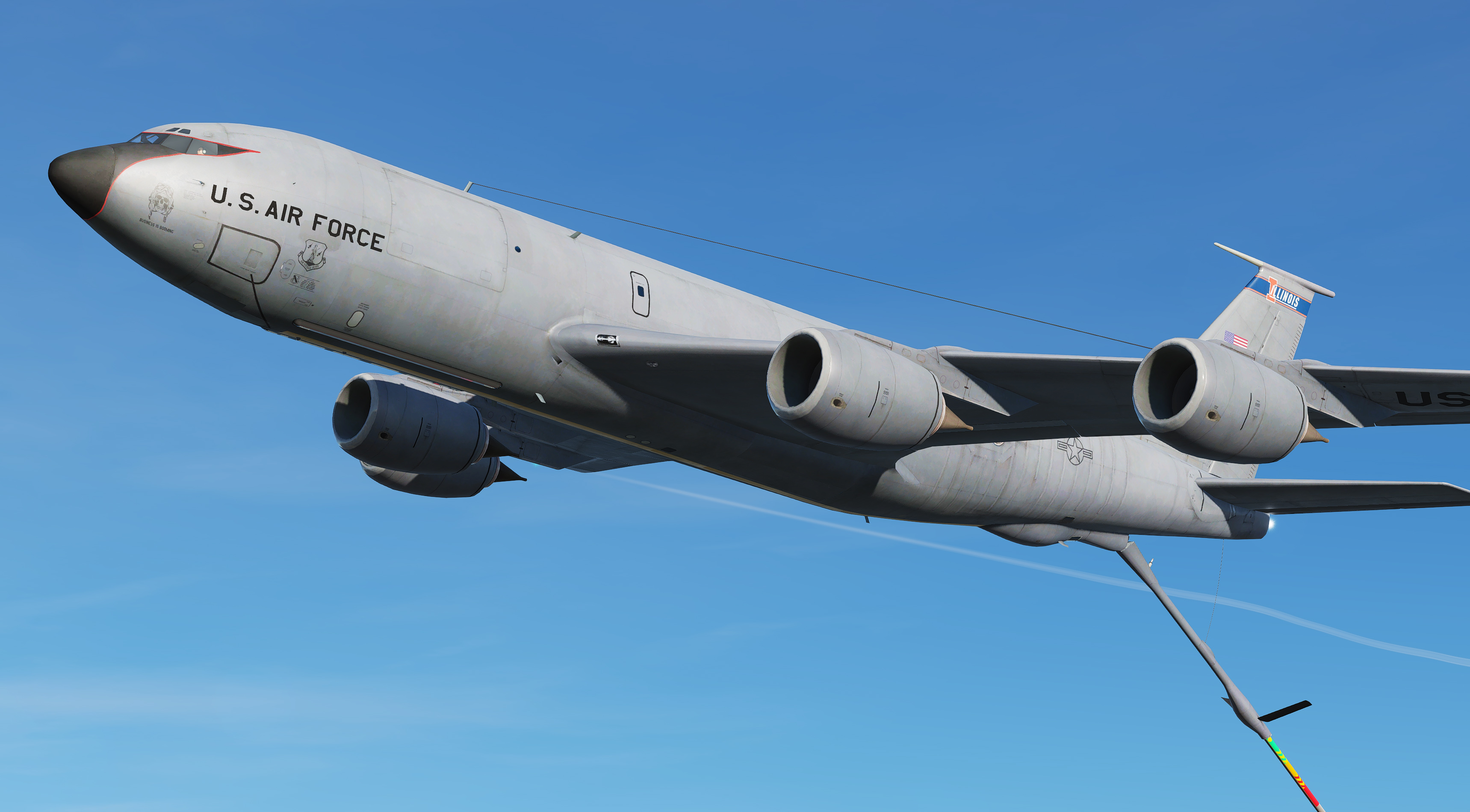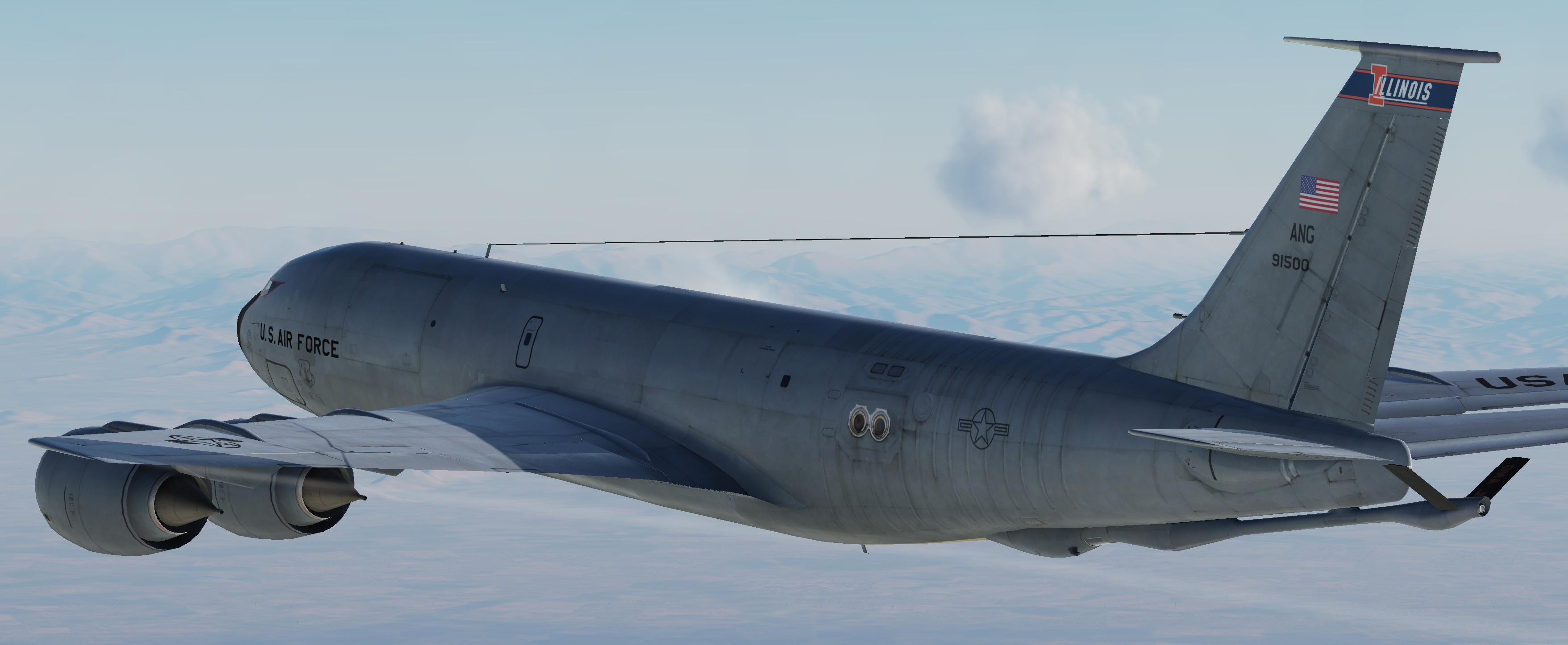 Skin for the KC-135 (boom & MPRS versions), based off of the Royal Air Force RC-135W 'RIVET JOINT' platforms.