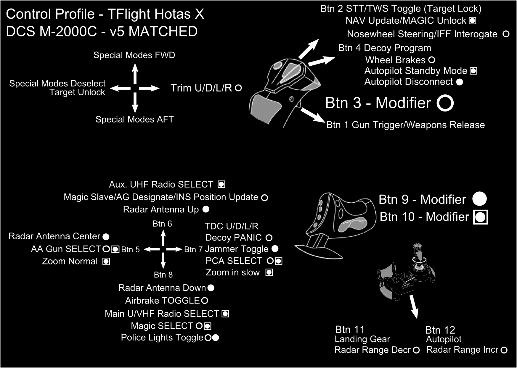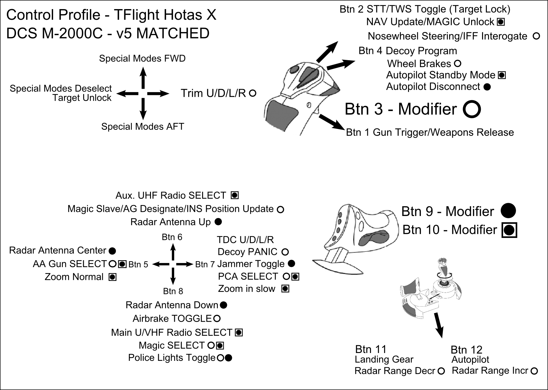 Control profile for the Thrustmaster Tflight HOTAS X joystick in DCS M-2000C with attached diagram for easy reference.