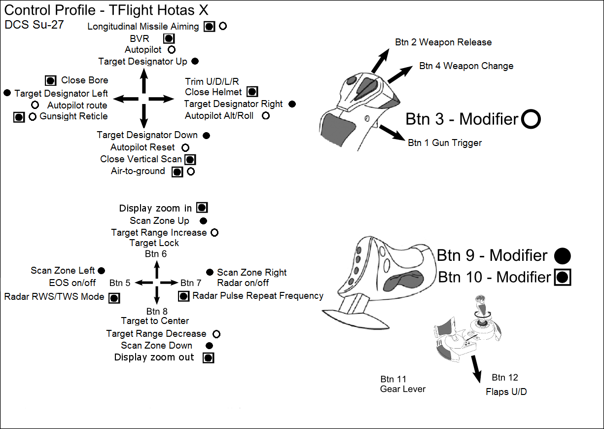 Control profile for the Thrustmaster Tflight HOTAS X joystick in DCS KA-50 Blackshark with attached diagram for easy reference.