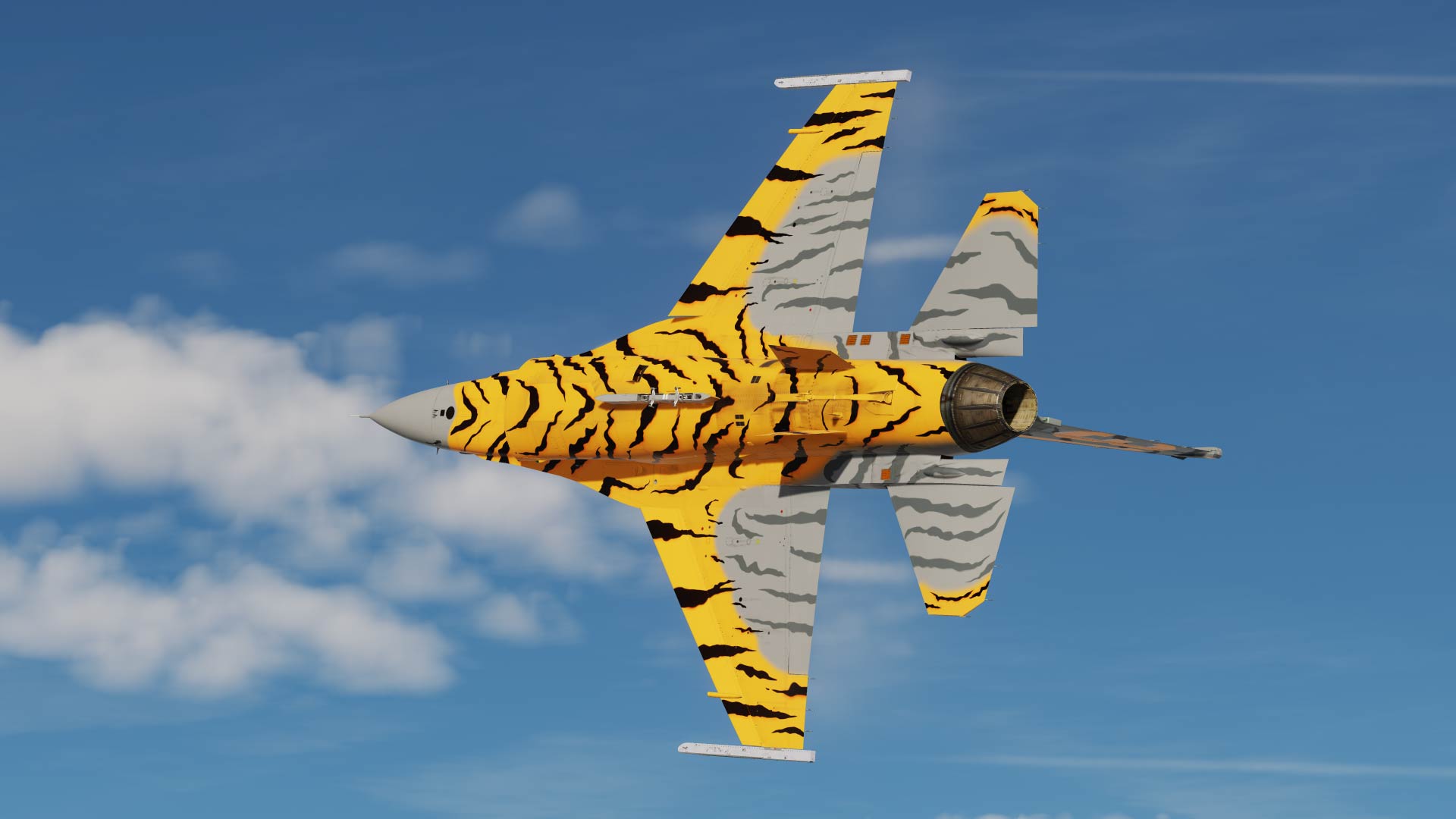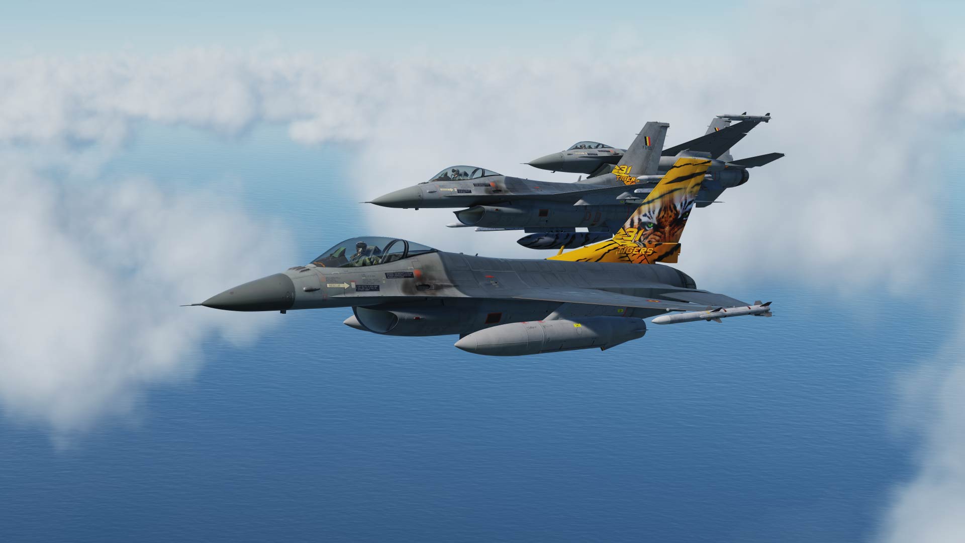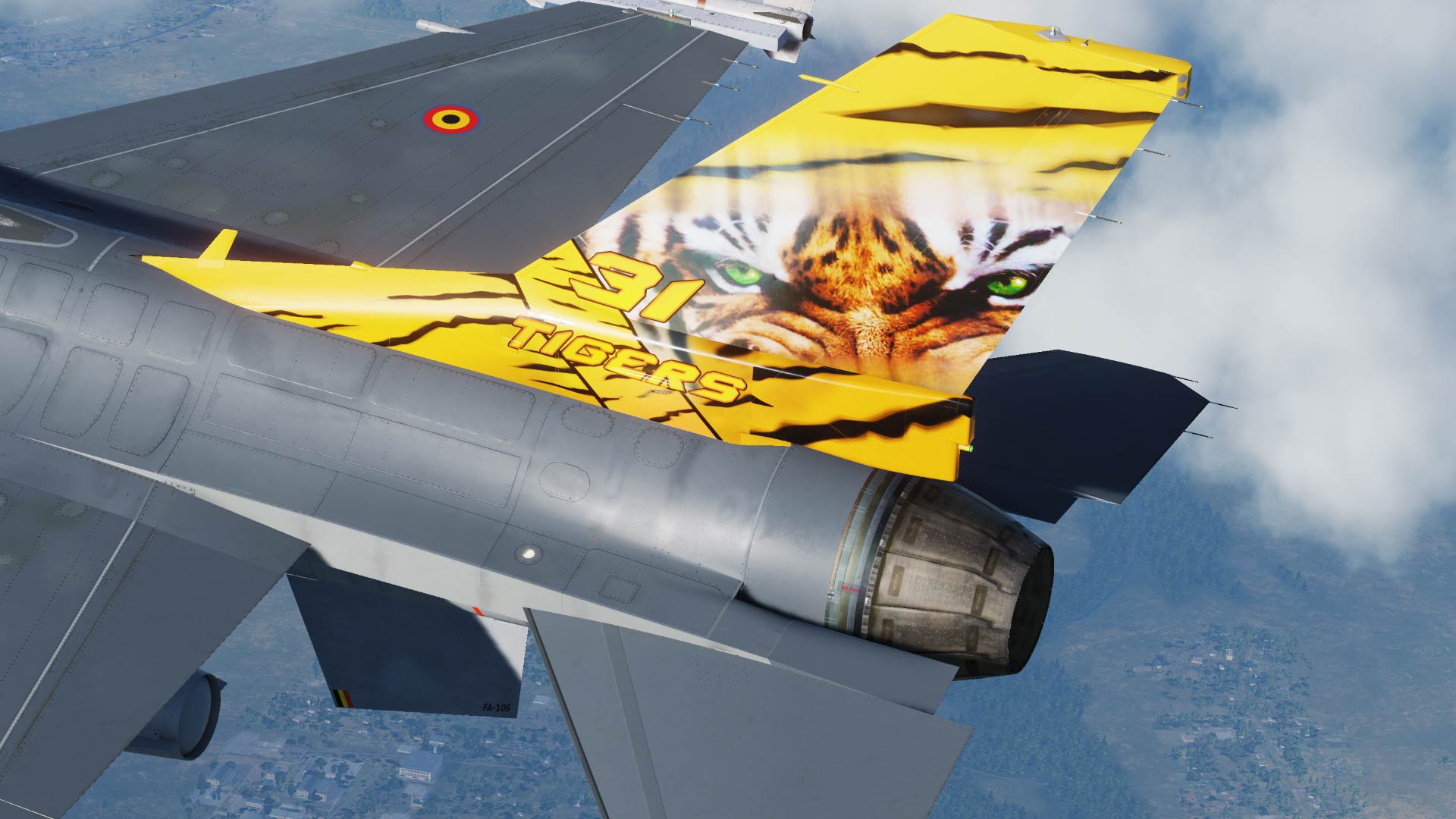 This is a photoreal recreation of 3 Polish Air Force F-16C 52+ Tigermeet Liveries with tons of little extras to make it look as much as a block52+ as possible! The skin is compatbile with Scooby's CFT mod and has very detailed and weahtered CFT's and a parachute holder texture. Panels on the jet have been added seen on real jets to accomodate CFT plumbing. Custom IFF antenna in the front, custom patches, a flag in the cockpit and custom dirty fuel tanks are just a few of the details on this skin.