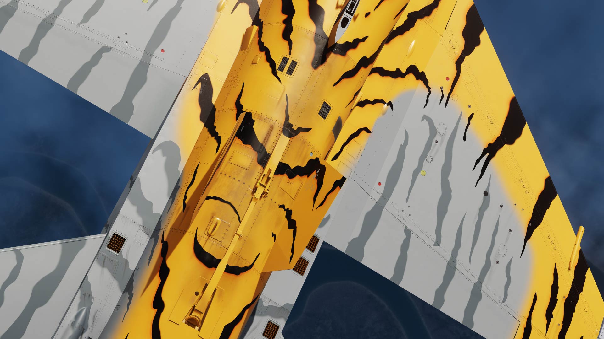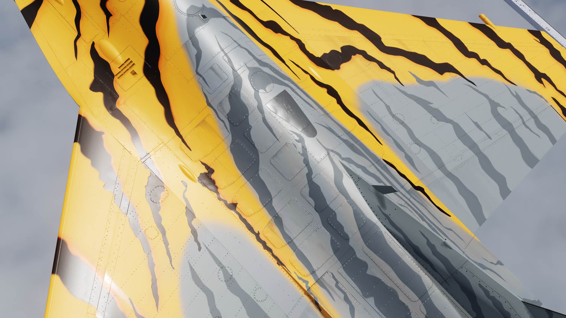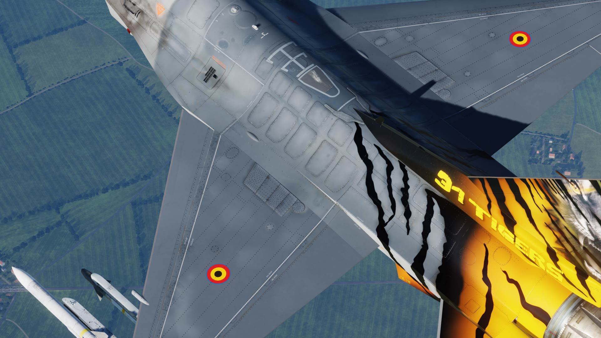 This is a photoreal recreation of 3 Polish Air Force F-16C 52+ Tigermeet Liveries with tons of little extras to make it look as much as a block52+ as possible! The skin is compatbile with Scooby's CFT mod and has very detailed and weahtered CFT's and a parachute holder texture. Panels on the jet have been added seen on real jets to accomodate CFT plumbing. Custom IFF antenna in the front, custom patches, a flag in the cockpit and custom dirty fuel tanks are just a few of the details on this skin.