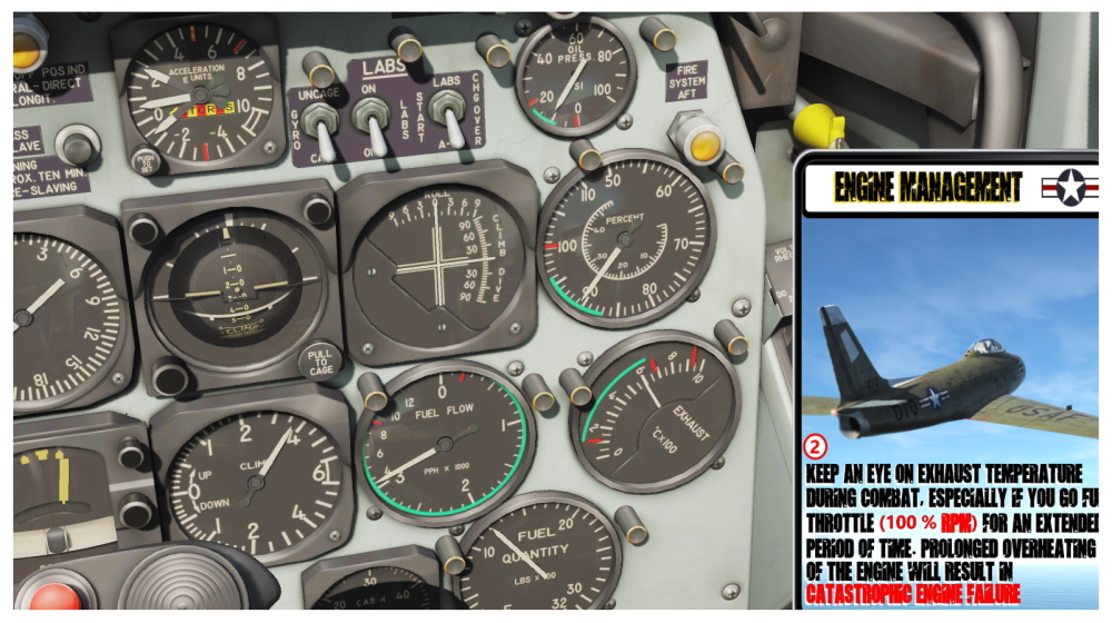 Cockpit Familiarisation and Training flight for the F-86F Sabre. Being a VR pilot, I create a series of custom kneeboards and somewhat inspired by Chuck's amazing guides. I wanted to be able to learn-as-I-go from within the headset and the mission-specific kneeboard missions also act as a handy 'refresher' when you come back to a module after a time away.<br />