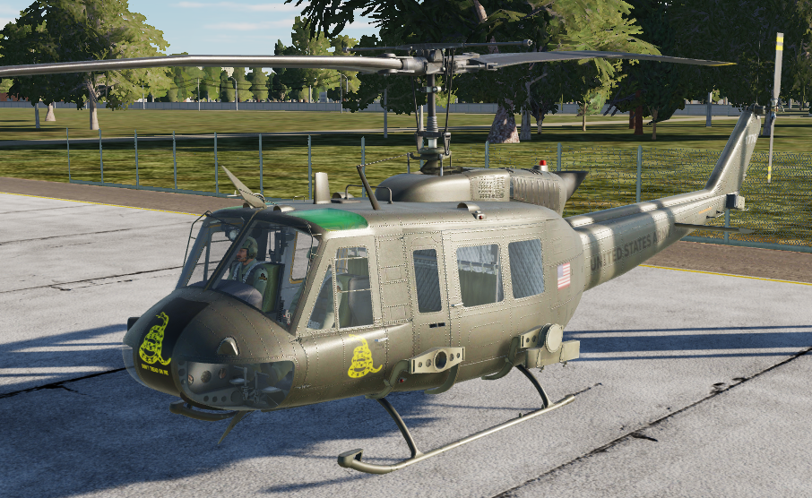 This skin uses "UH-1H (bell-205) Civil Pilot" mod by RUS -included in the files.