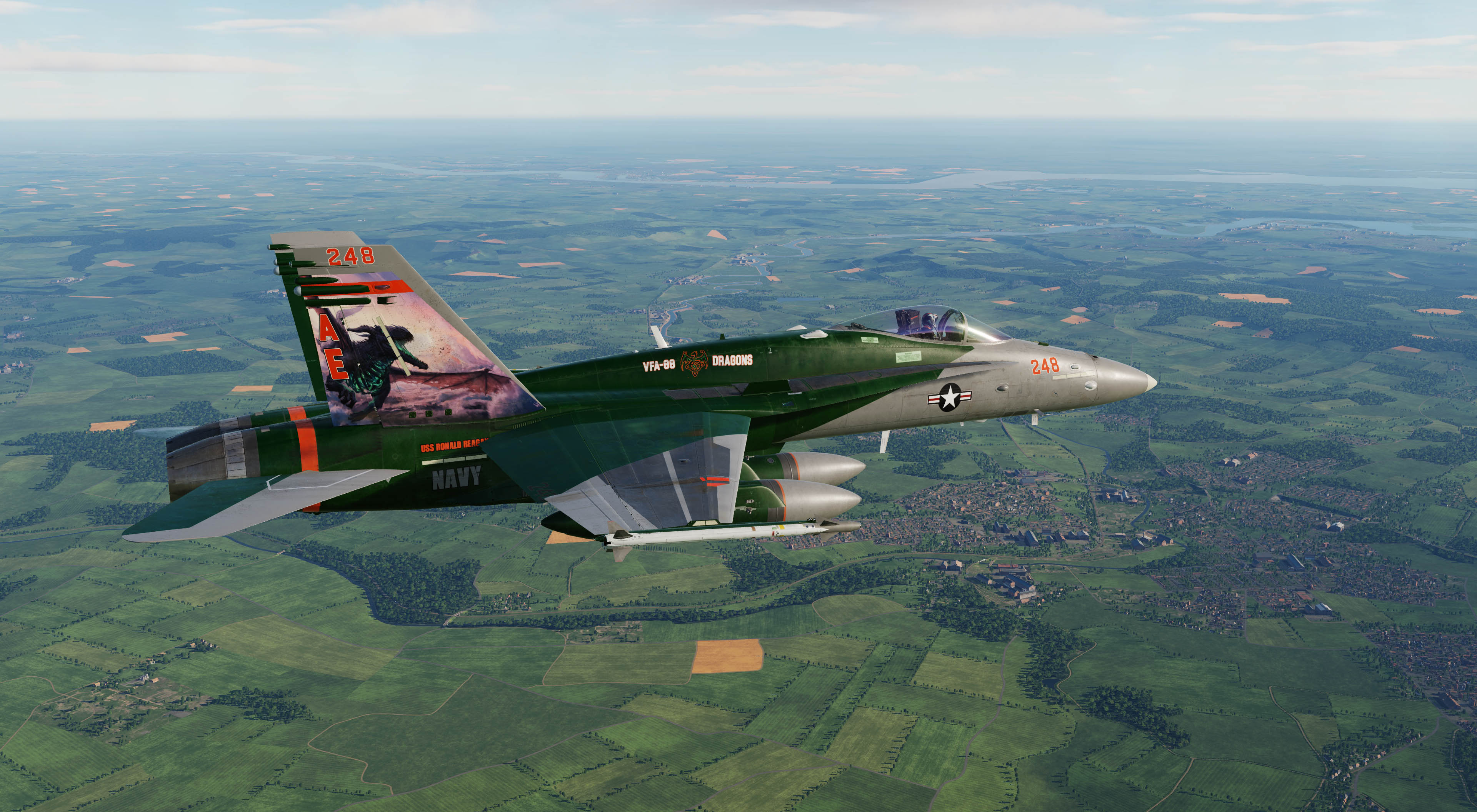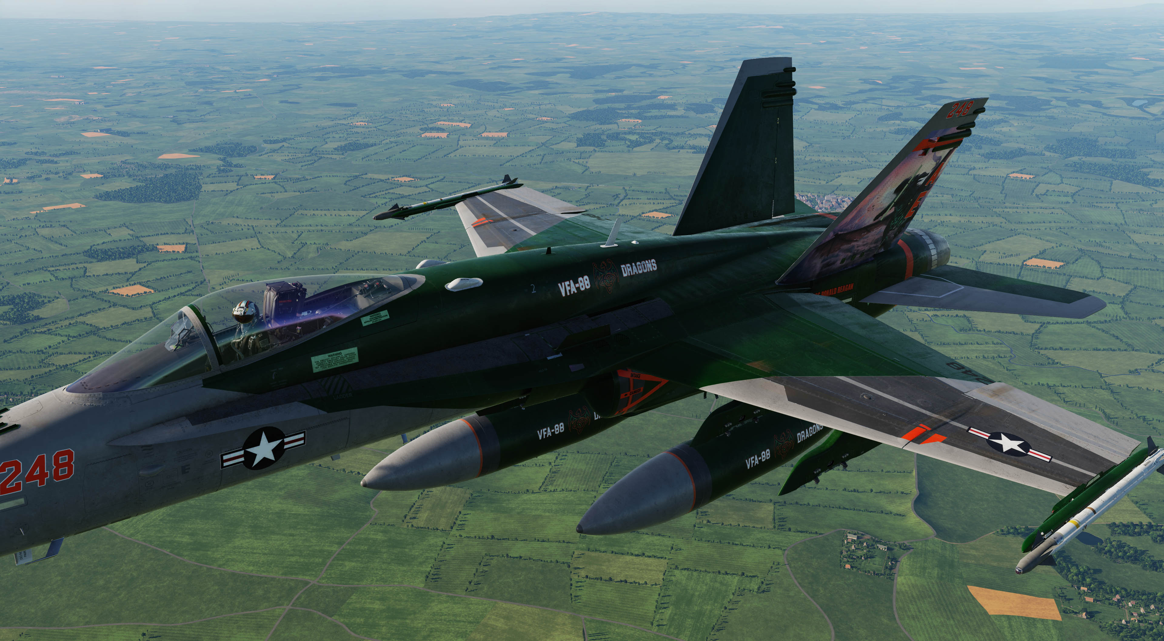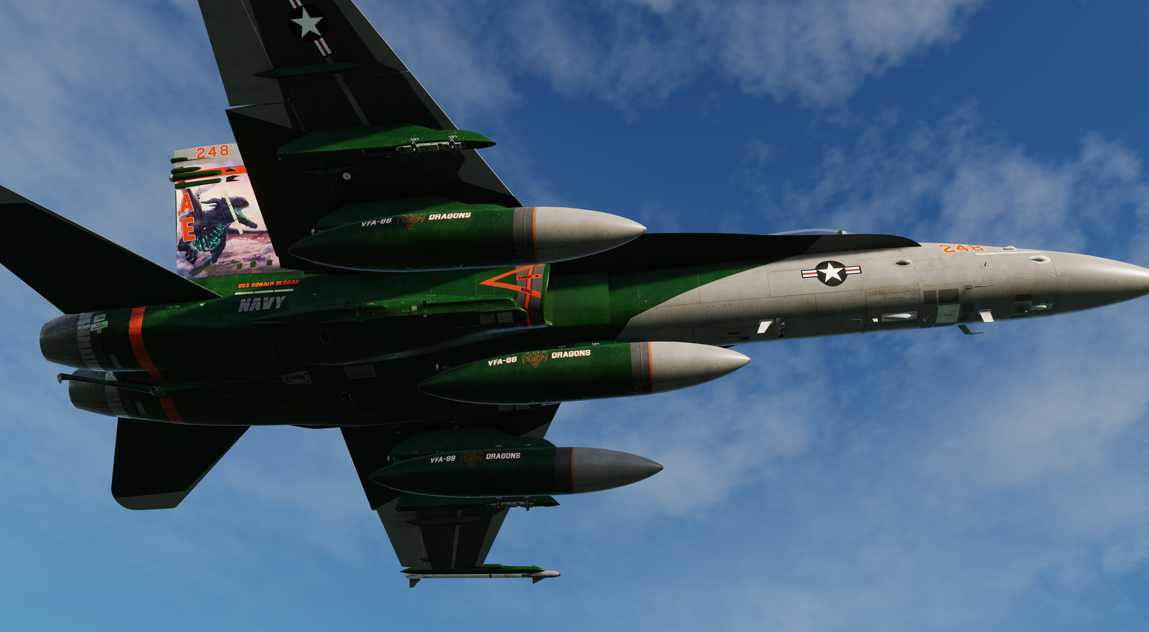 Here's a skin I didn't think I'd like as much as I do. SW based paint scheme on the F/A-18C Hornet. I claim no credit for the tail art, helmet art, or the dragon logo but I do claim credit for creating the skin.