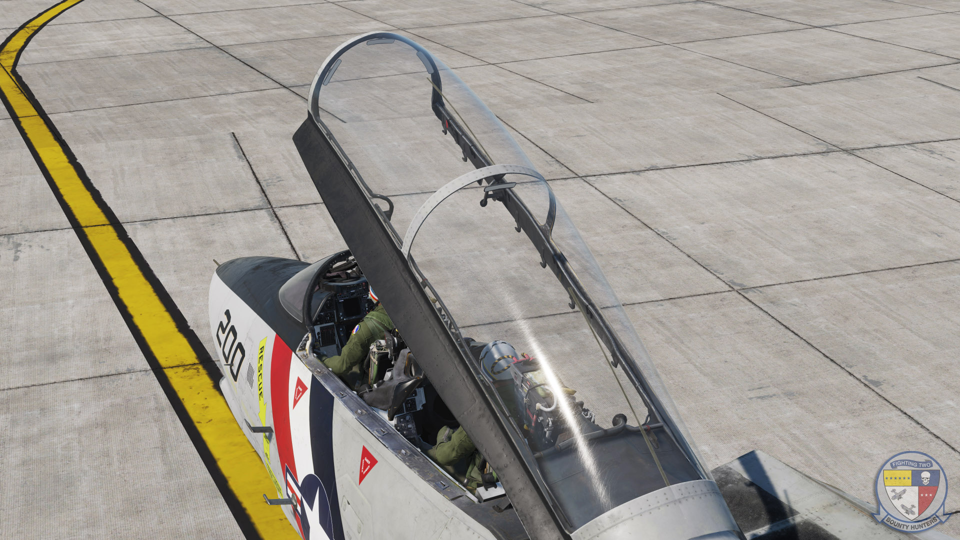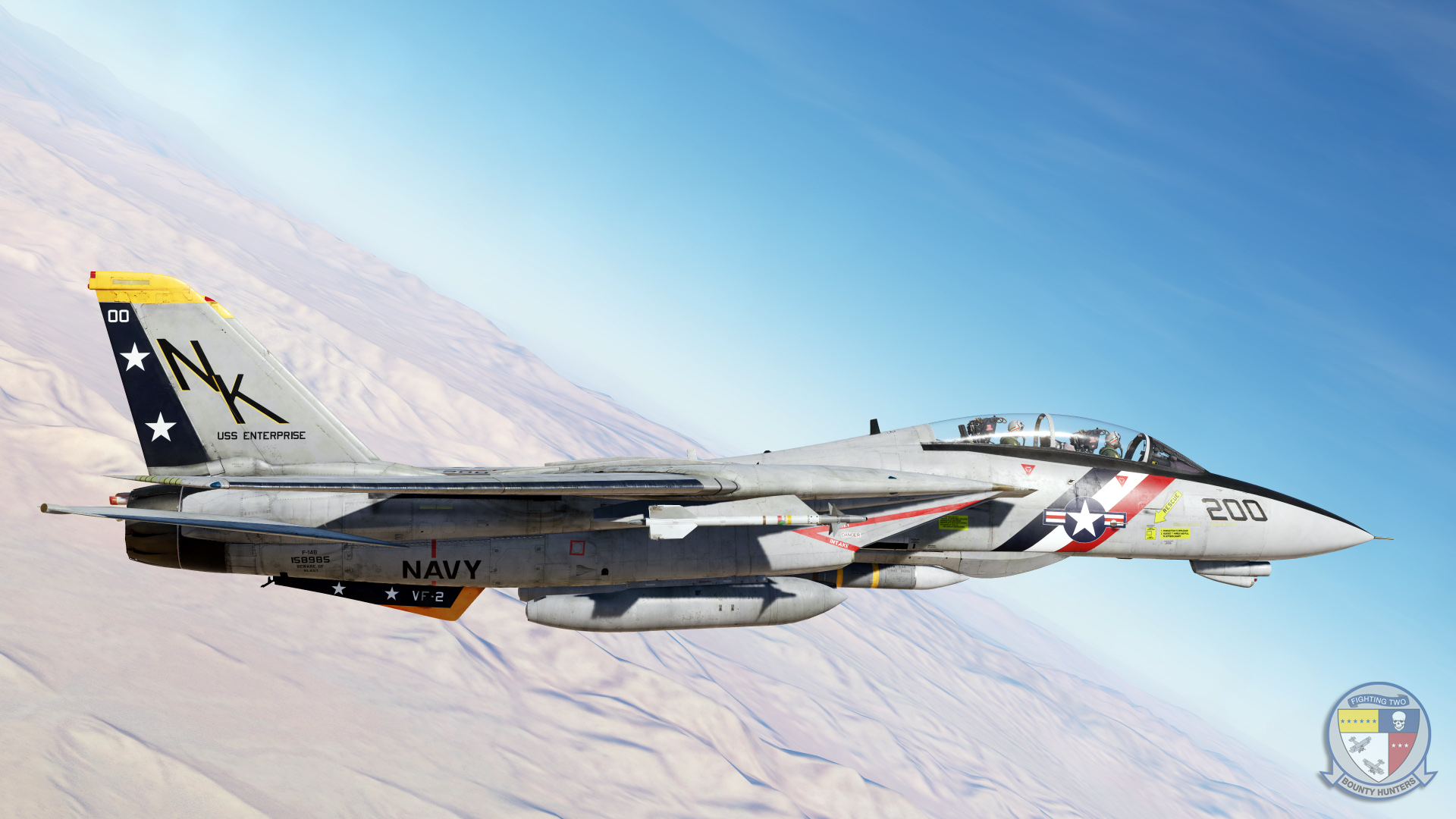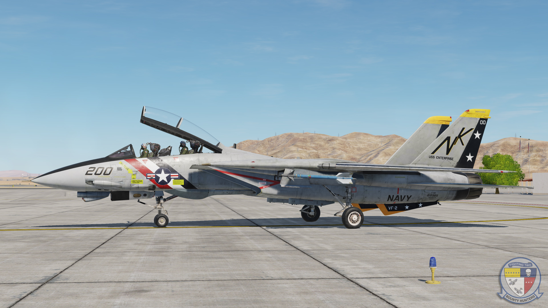VF-2 Bounty Hunters' first CAG aircraft after squadron establishment on the 14th of October, 1972, Bureau Number 158985. The skin is a portrayal during the initial Tomcat cruise aboard the USS Enterprise between 1974 and 1975.