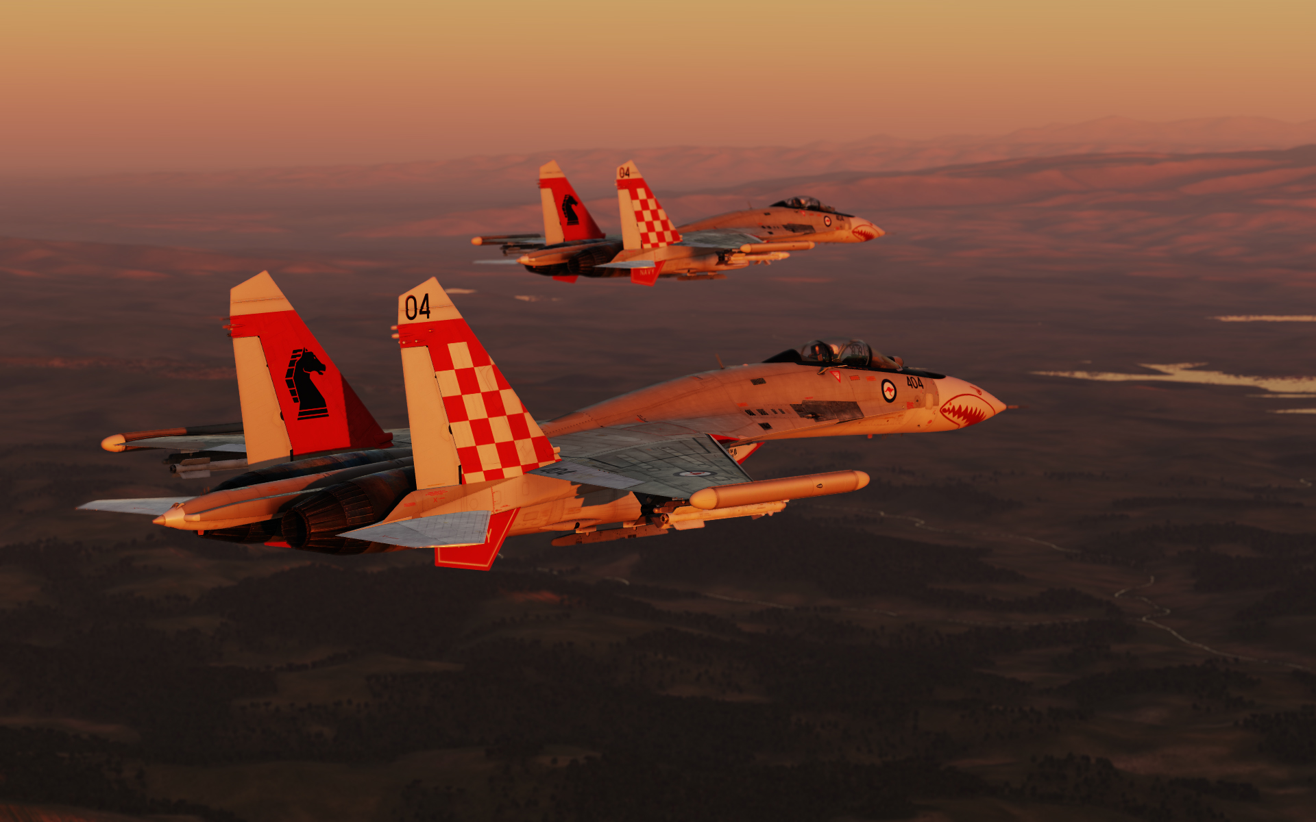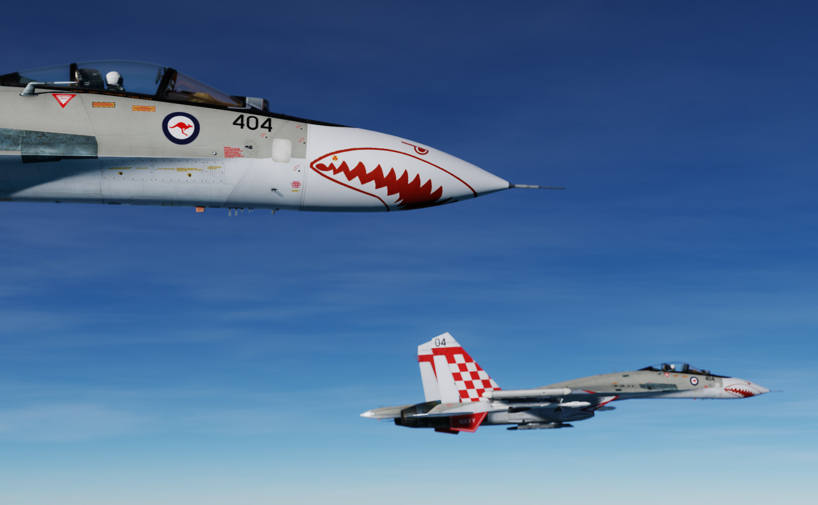 In the spirit of my other RAN fictional schemes, I present the Su-27 in RAN VF-805 colour scheme.  Created so that a mate of mine who flies Russian aircraft could fly with the same 'uniform' as the rest of us.