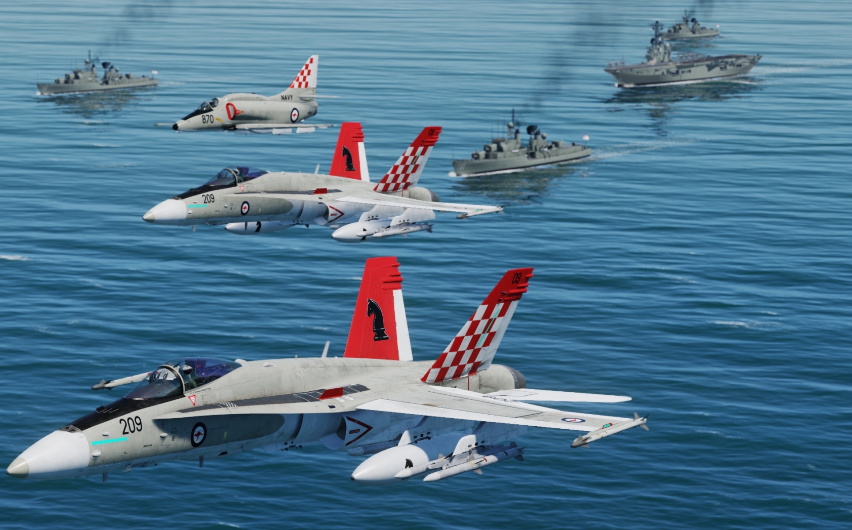 Fictional Royal Australian Navy livery from the late 1970s.  Based on the Gull Grey/White scheme of the RAN A4G Skyhawks operating from HMAS Melbourne in the 1970s.