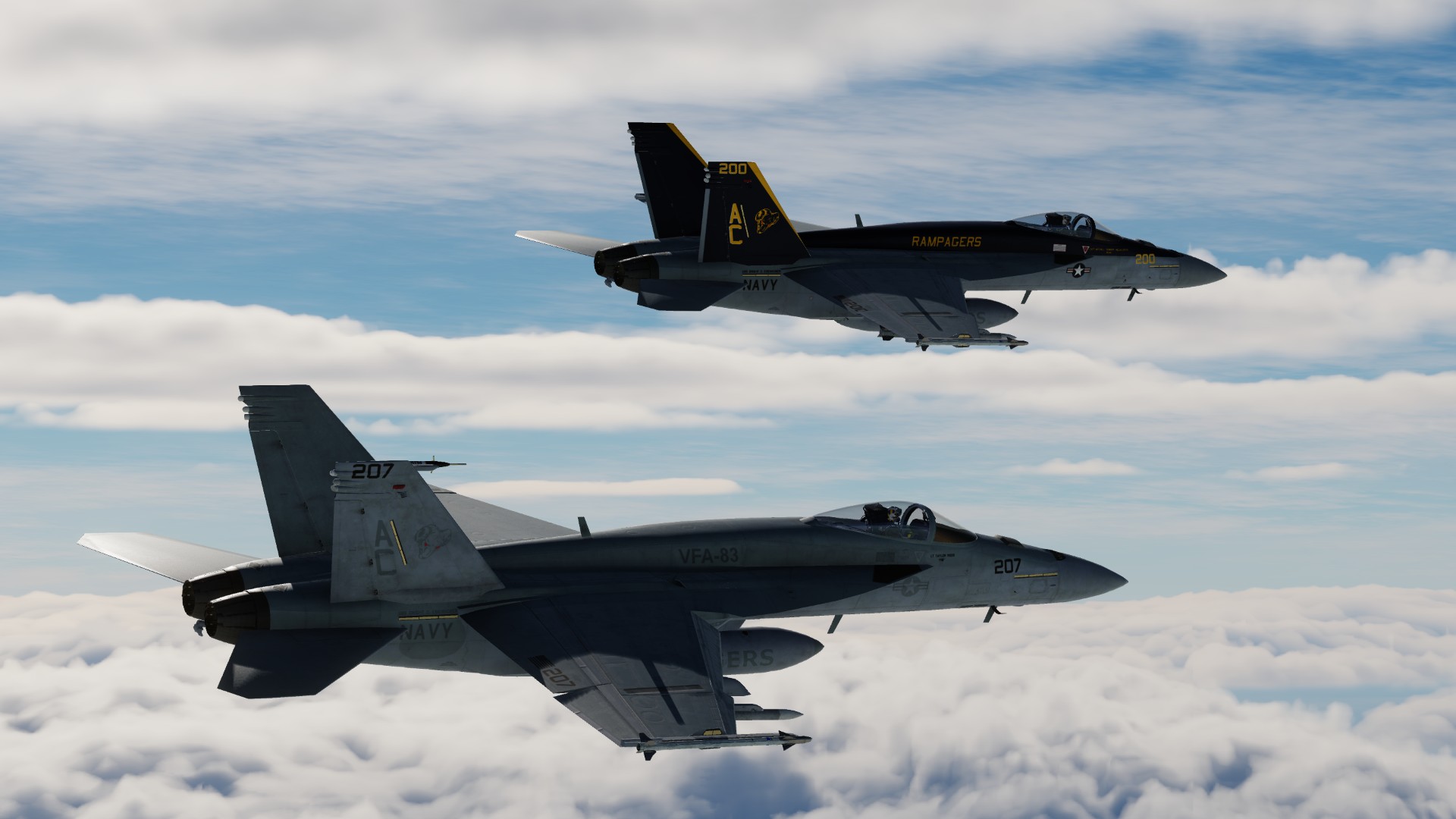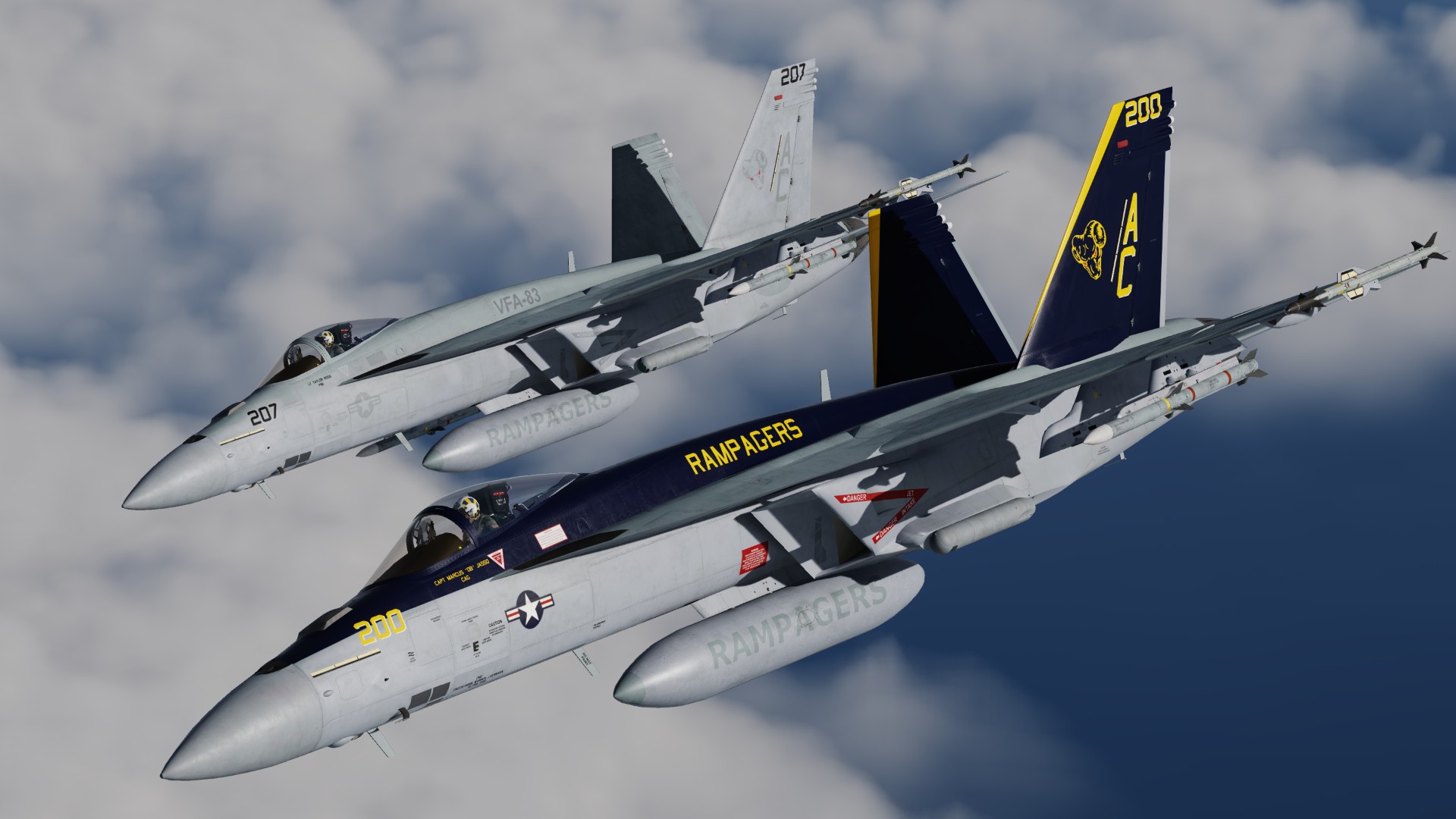 This pack includes 3 liveries representing VFA-83 "The Rampagers".