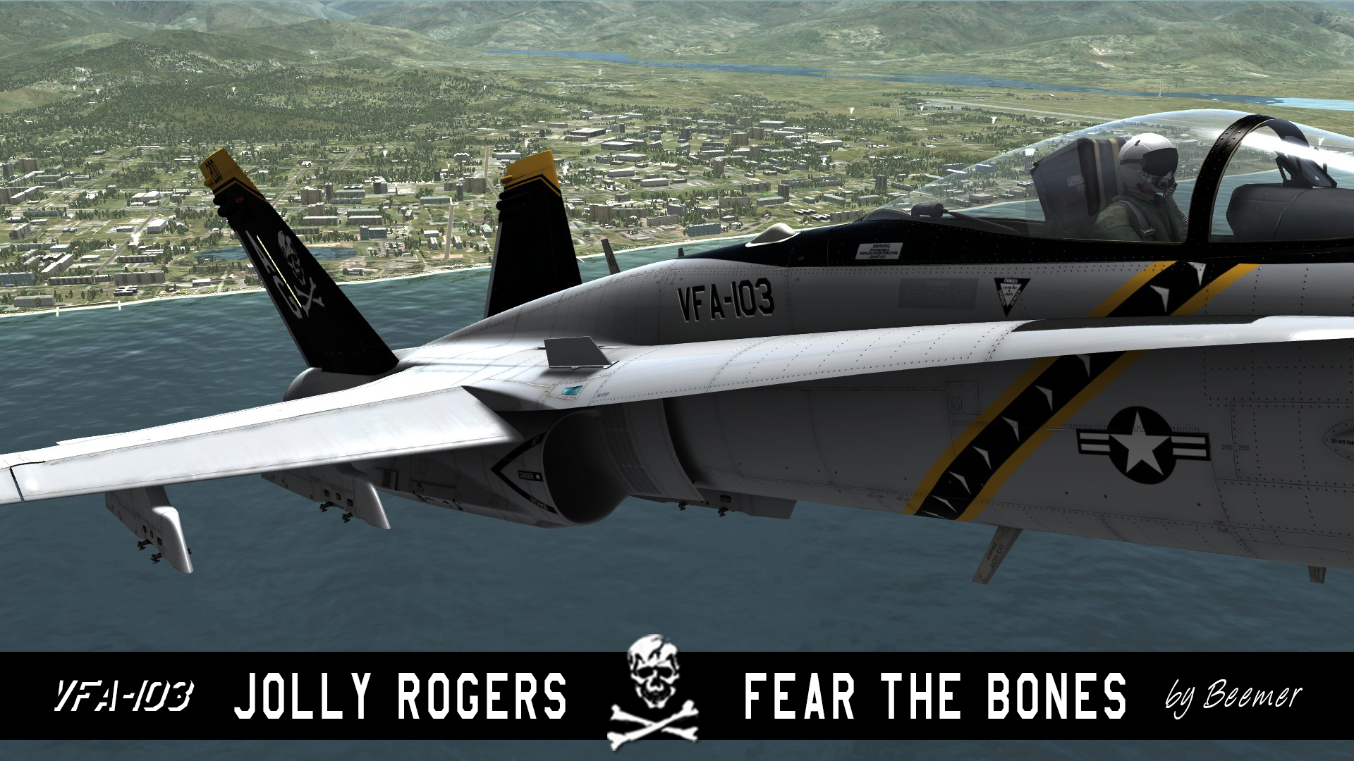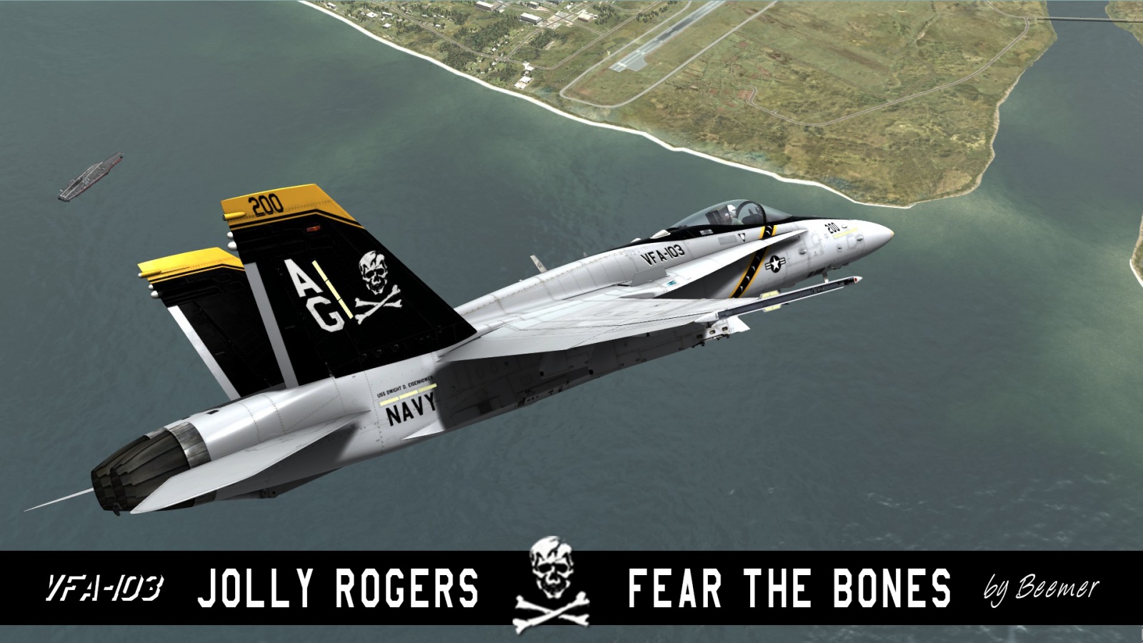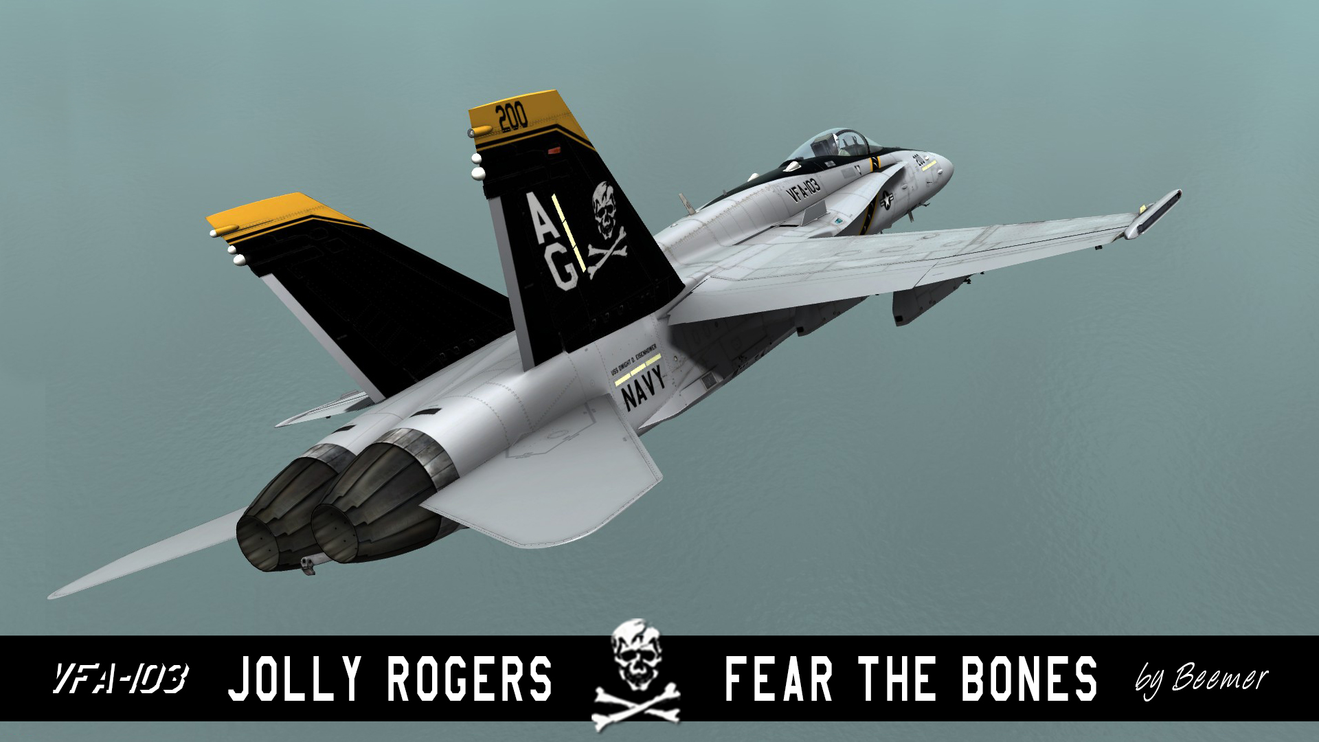 Inspired by VFA-103 Jolly Rogers Hornets. To install, open up the RAR file and from it drag and drop the VFA-103 folder into your Disk:\Program Files\Eagle Dynamics\DCS World OpenBeta\CoreMods\aircraft\F-5E\Liveries\F-5E-3, or into your C:\Users\USER\Saved Games\DCS.openbeta\Liveries\F-5E-3 folder and enjoy :) I hope you like the livery, feel free to rate it and comment, and as always have a safe and pleasant flight!