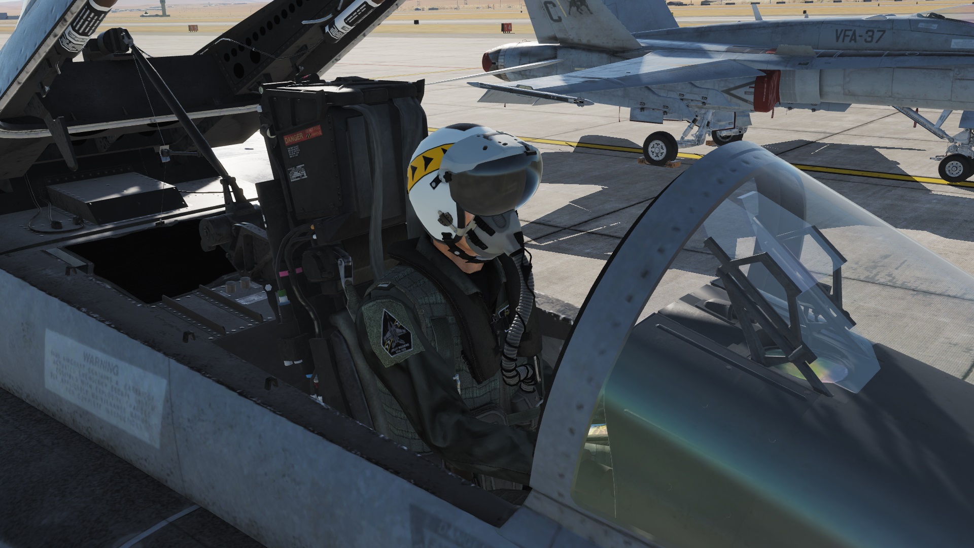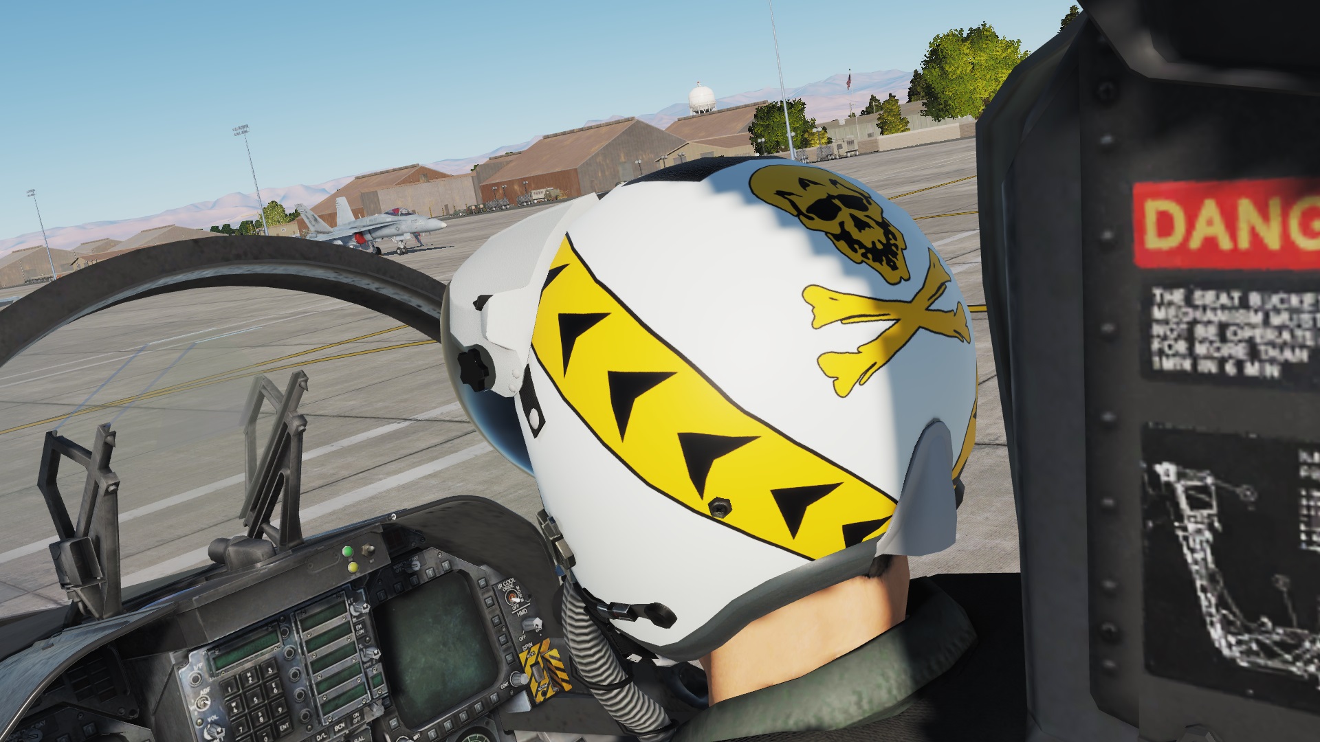Contains a .psd file to create custom USN squadron helmet designs on a realistic white reflective tape JHMCS helmet as well as an editted F18 pilot texture with a black t-shirt and brown boots