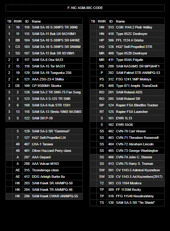 F-16C Kneeboard AGM-88C Threat Code  (Update 13 AUG 2021)