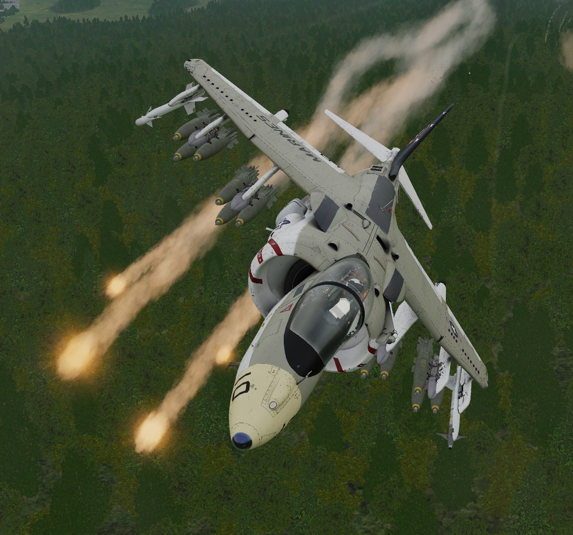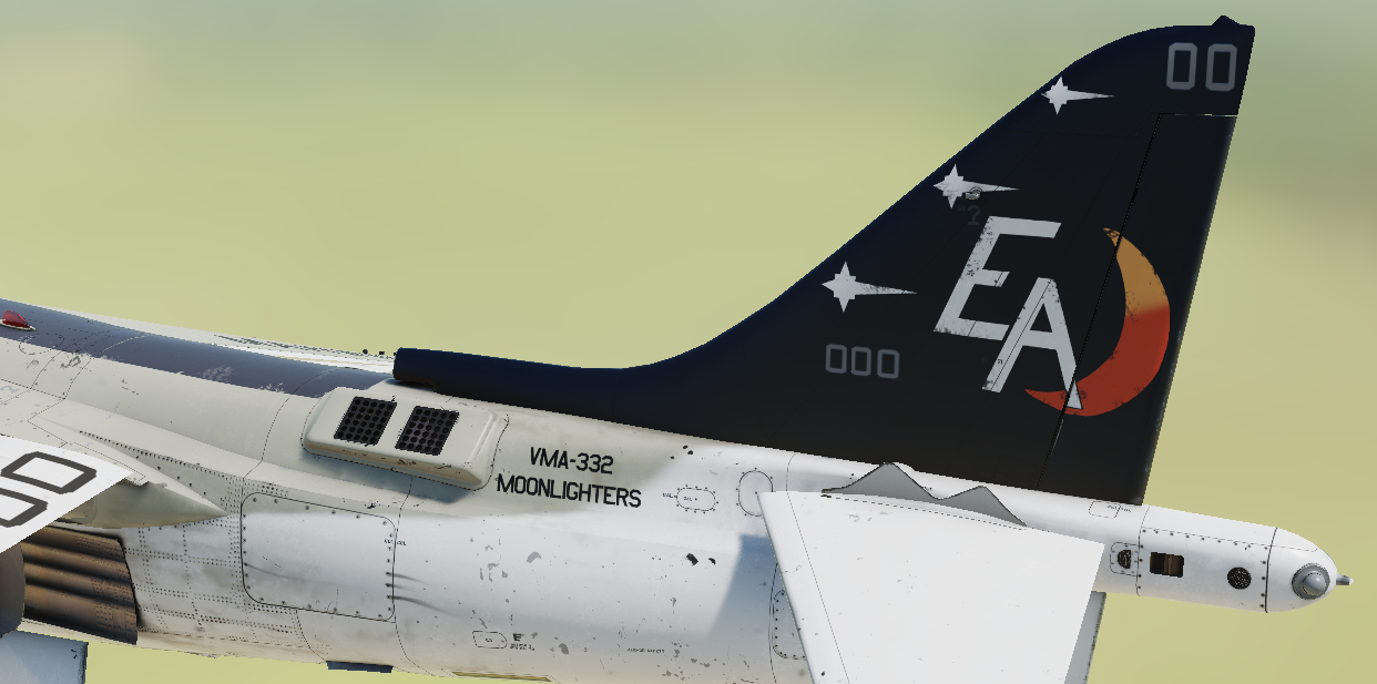 Skin it's based on photos of AV-8B+ (serial number165568) used in VMA-211 "Wake Island Avengers" made for @nerdkid_23 ;) In practice it is a cosmetic modification of the already existing in DCS skin but I wouldn't say it was easy.