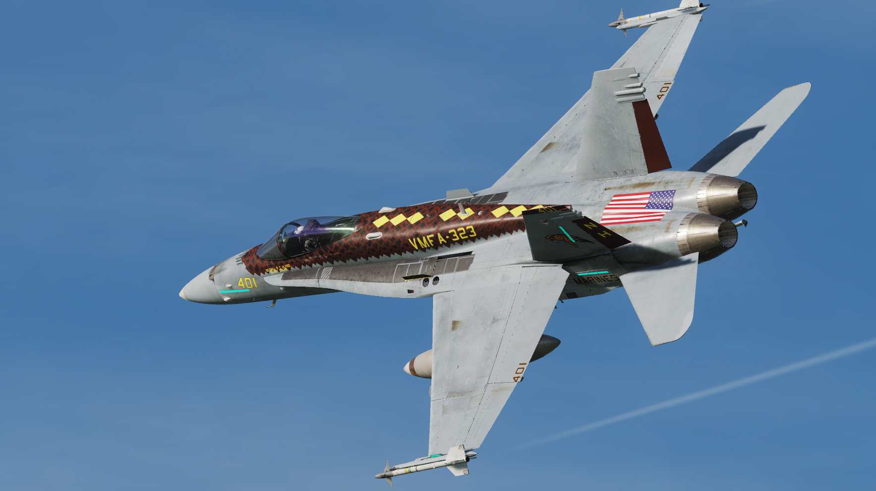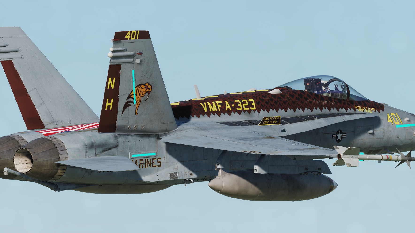 This aircraft depicts BuNo. 165220 of VMFA-323 during the Marine Corps final F/A-18 carrier deployment before transitioning to the F-35.  VMFA-323 recently returned from a deployment to the USS Nimitz.  Please enjoy this this "Last Ride" Hornet skin.  S/F