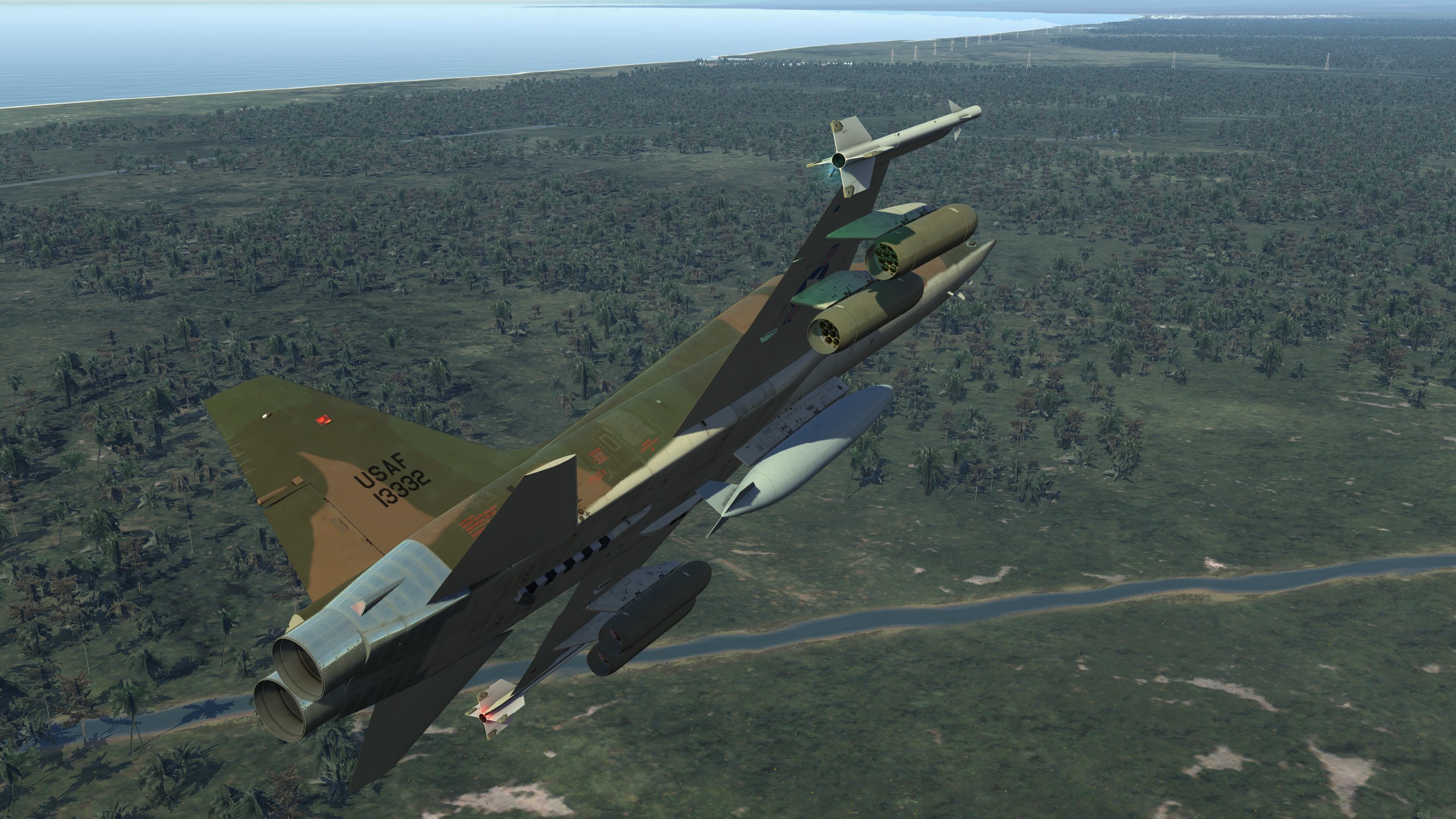 Este avión fue uno de los que más misiones voló en el programa de evaluación "Skoshi Tiger". Casi todo el morro del avión está cubierto con marcas de misión en Vietnam.