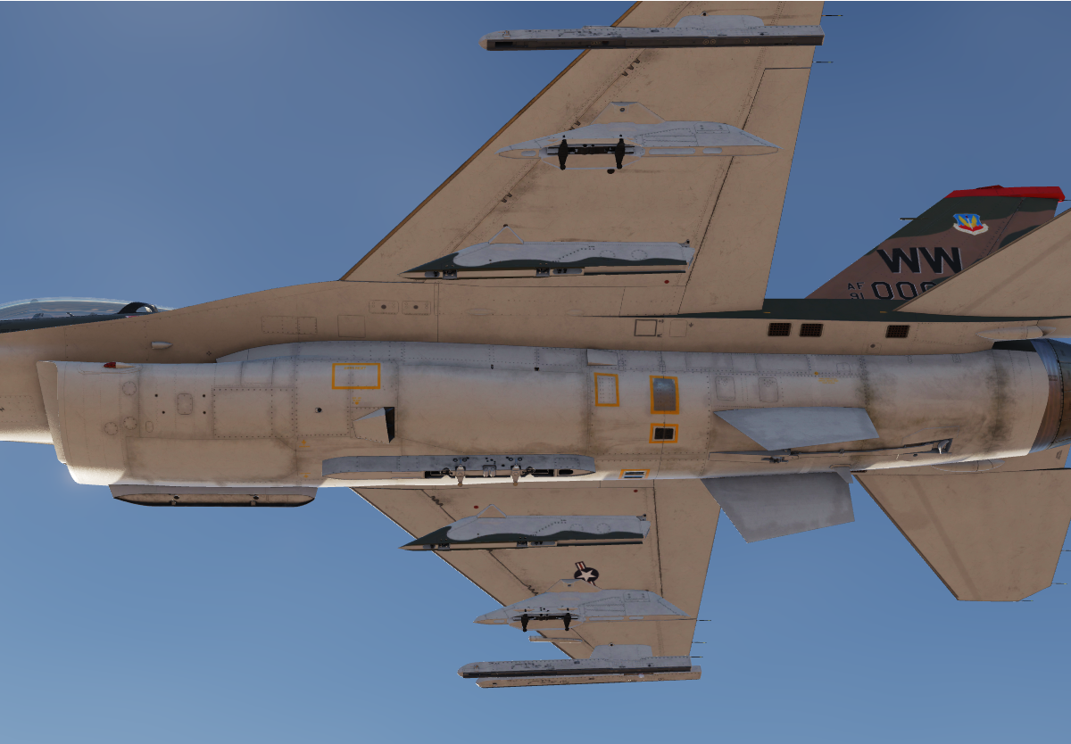First used in 2022, the Heritage theme for the 181st Fighter Squadron is based on the Jungle camouflage the unit wore while deployed in Clavis. The aircraft also bears markings significant to the squadron itself, though notably it lacks the Distinguished Unit award that most other Squadron aircraft bear.