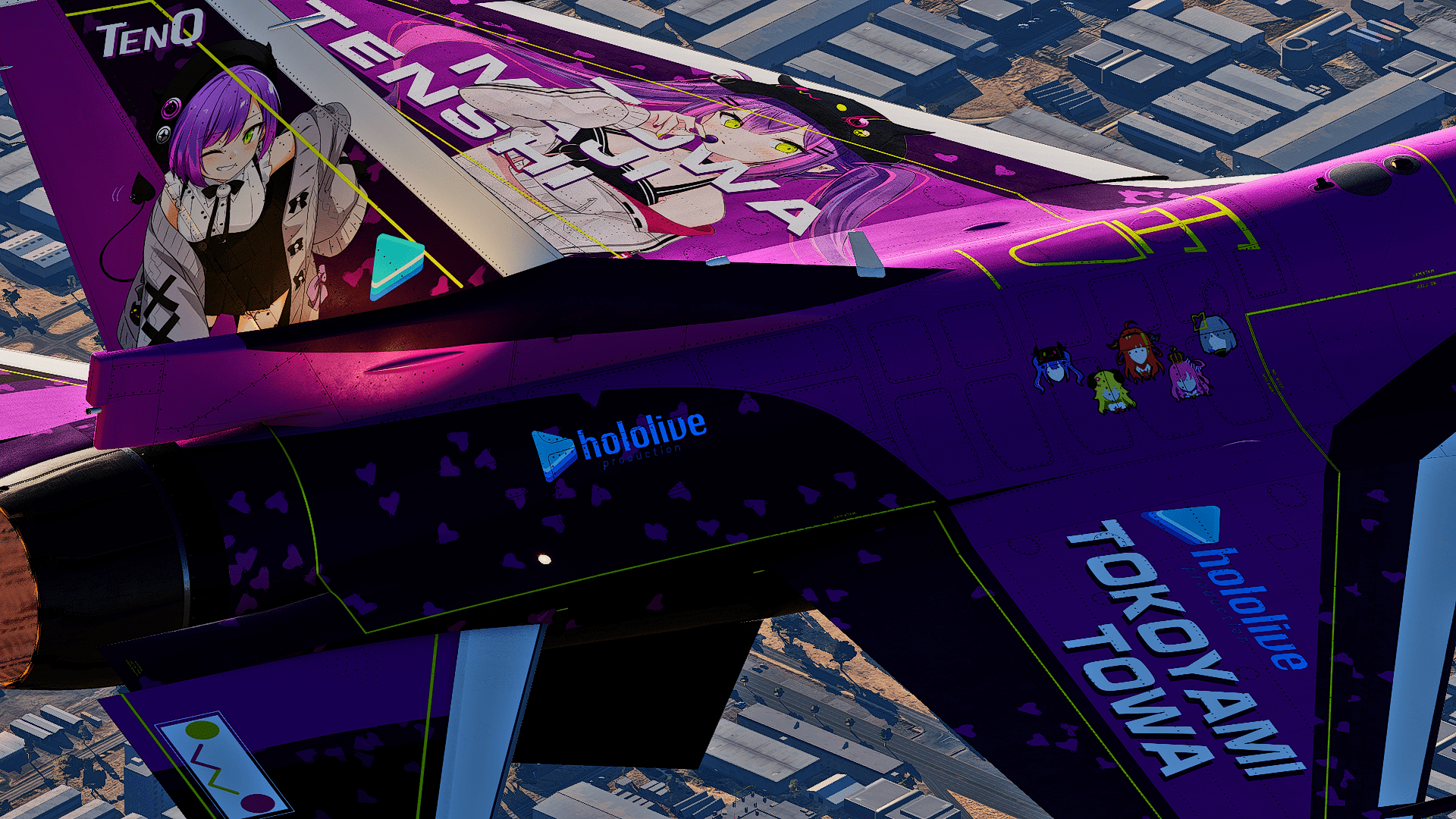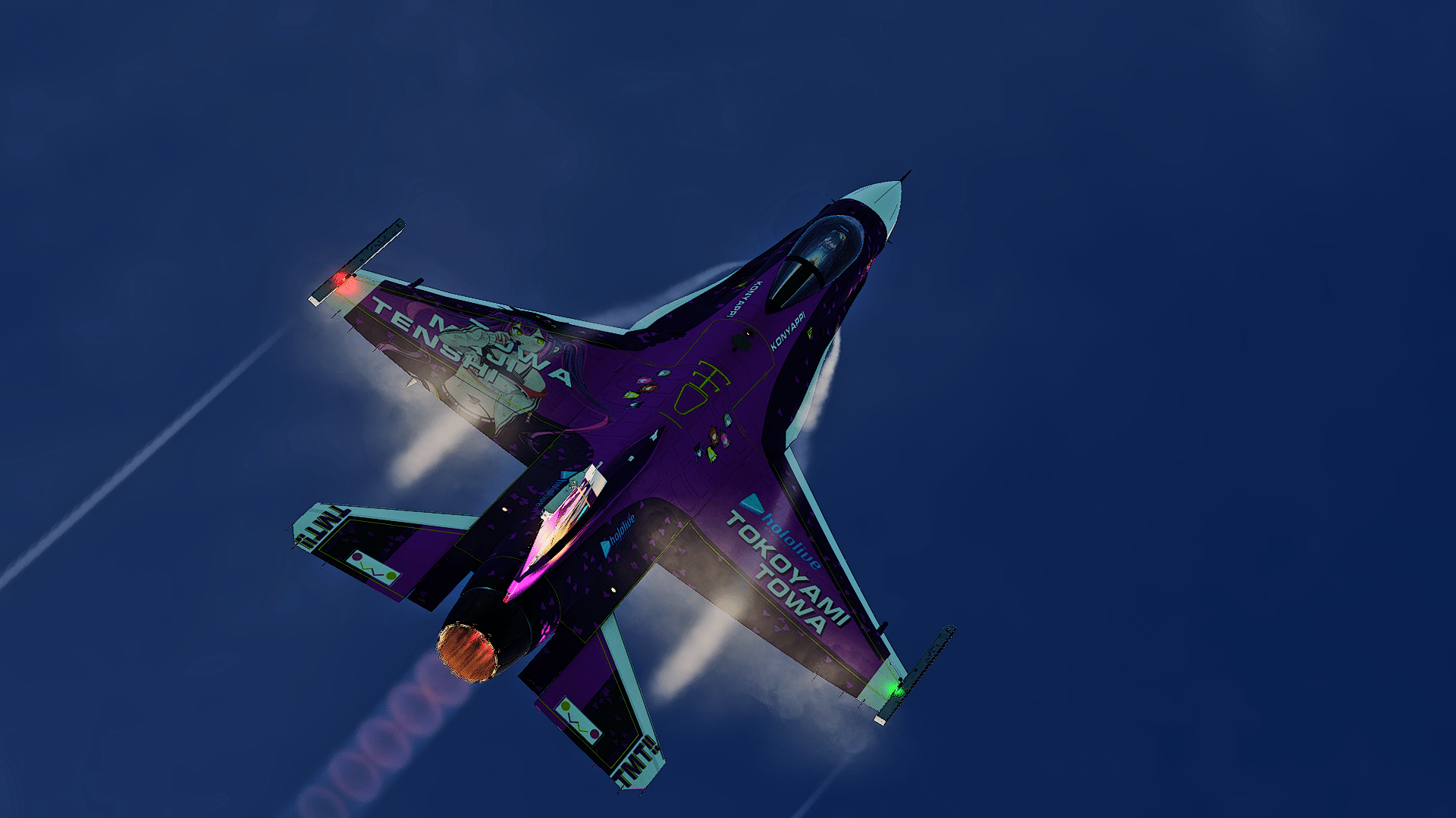 An anime skin F-16C featuring Tokoyami Towa that takes a little inspiration from Ace combat idolmaster skins but its mostly original