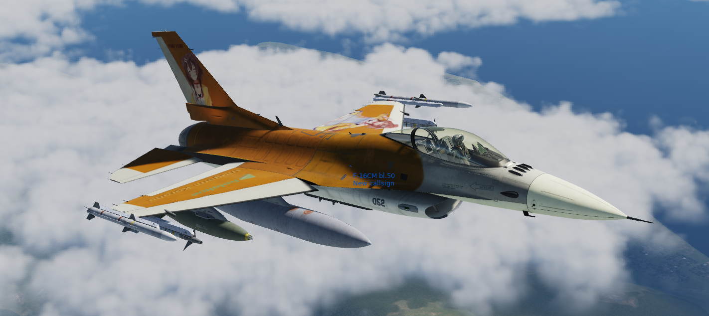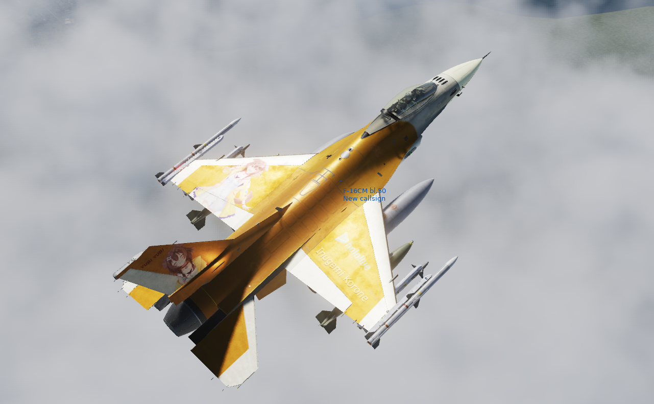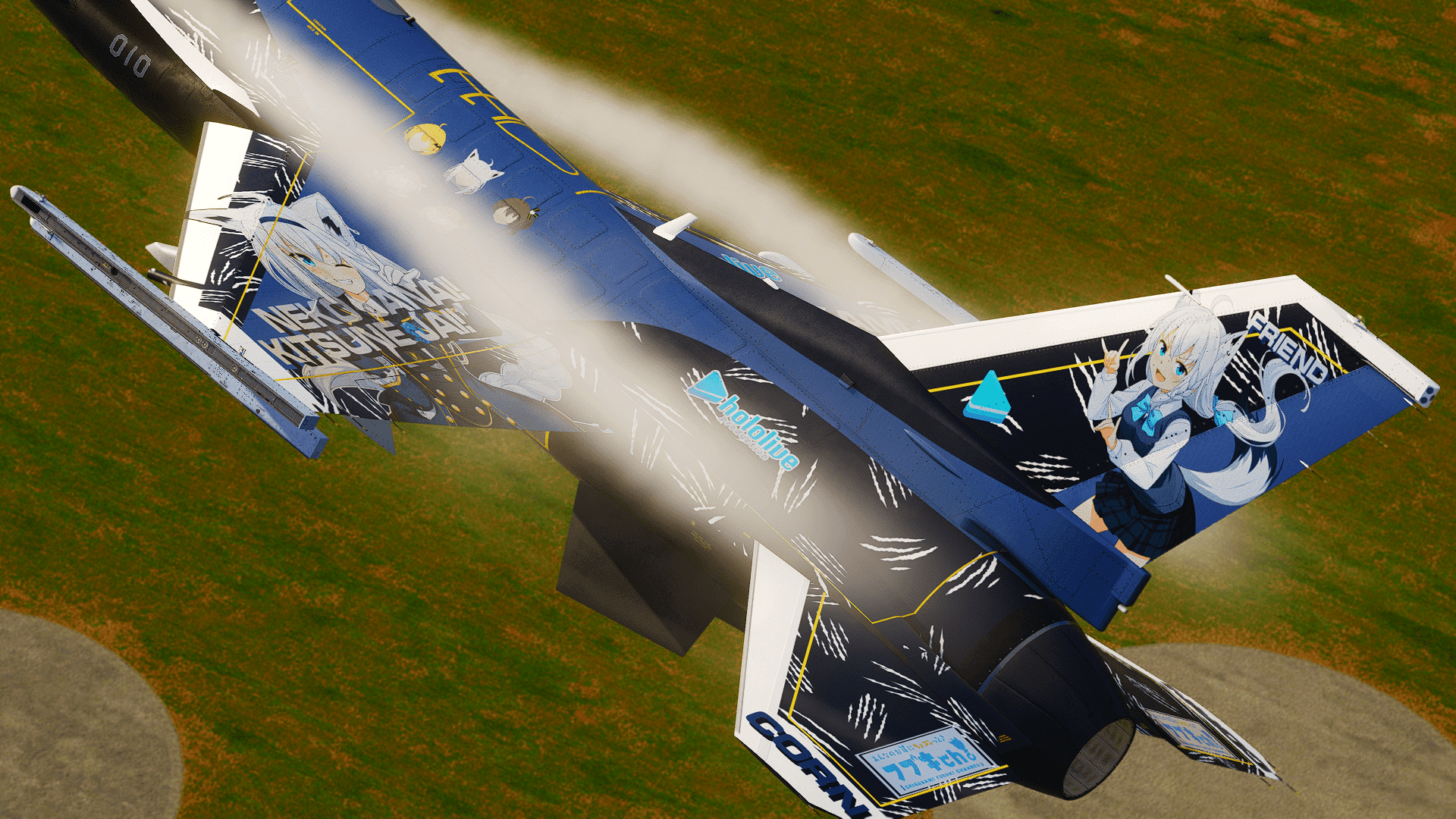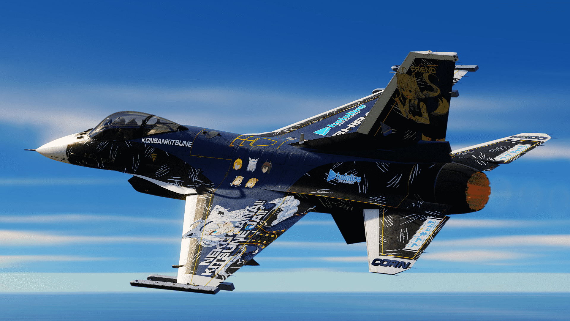 An anime skin F-16C featuring Shirakami Fubuki that takes a little inspiration from Ace combat idolmaster skins but its mostly original