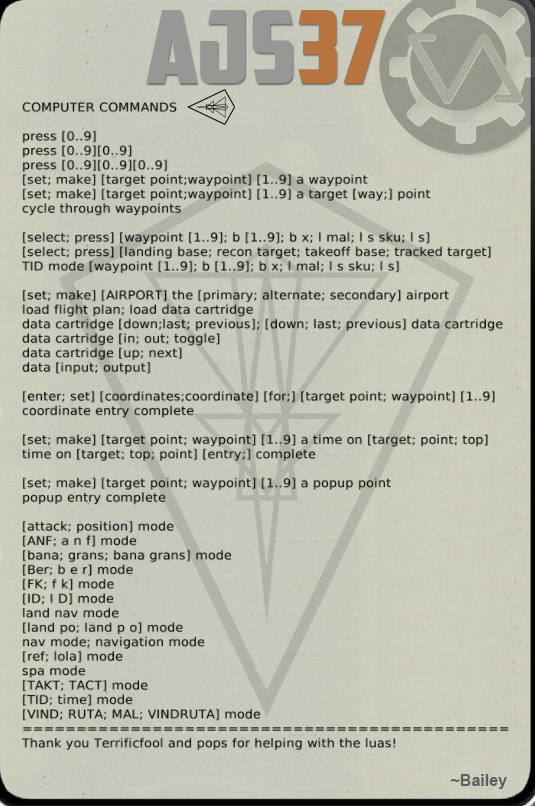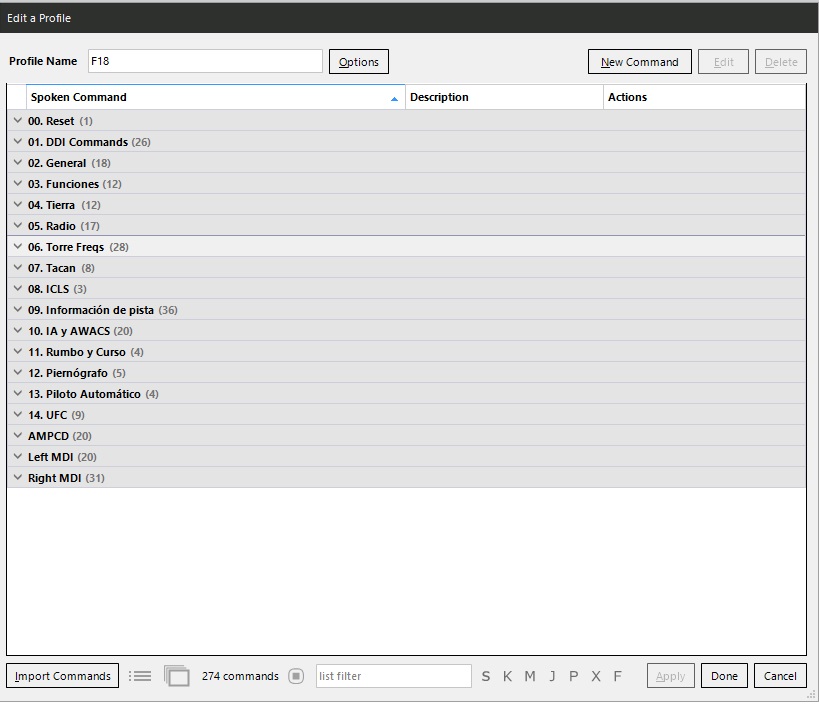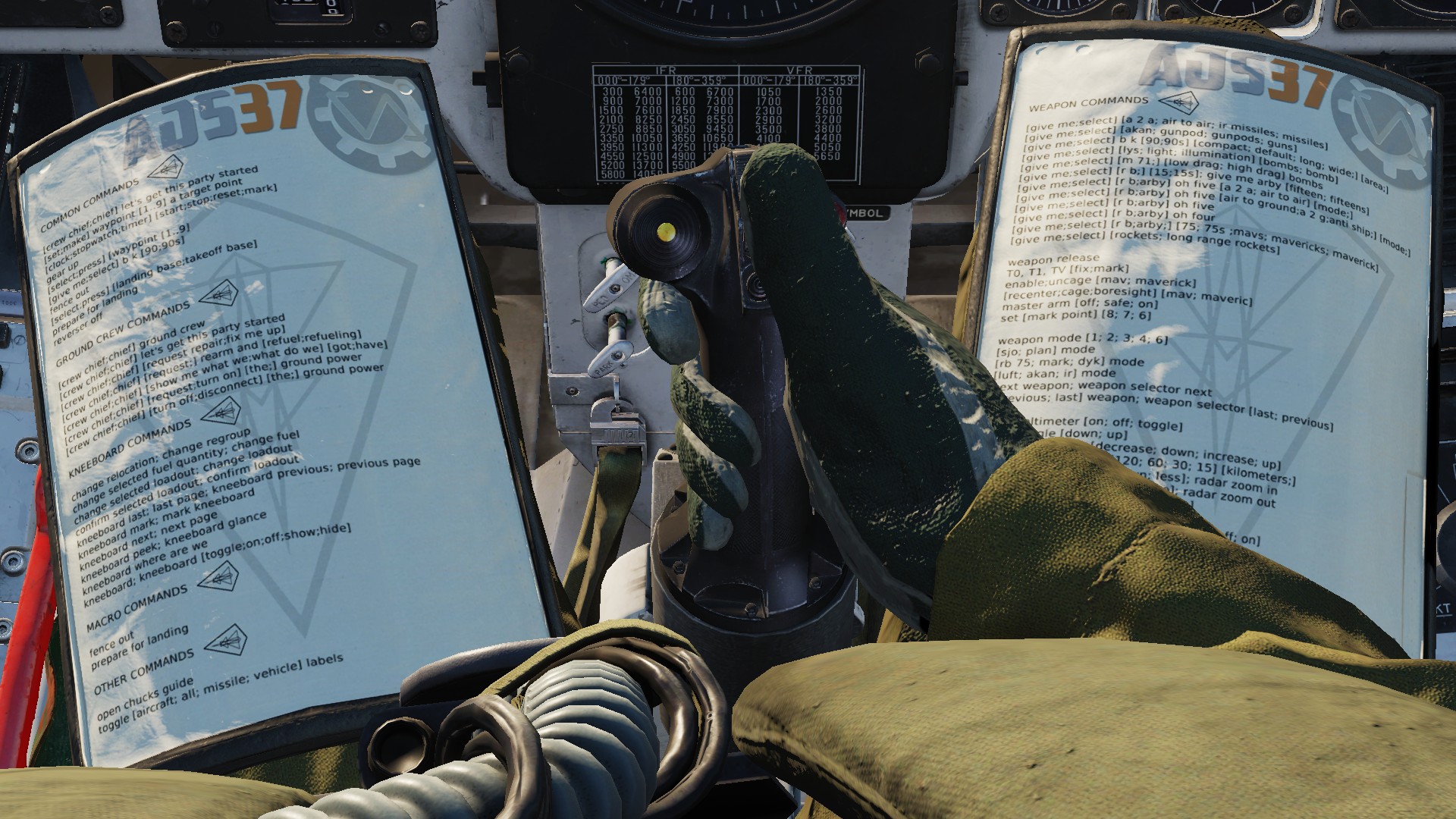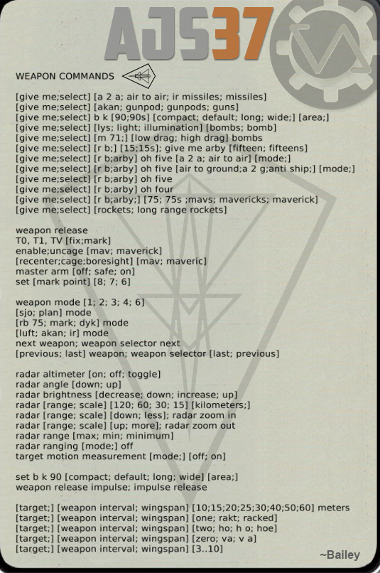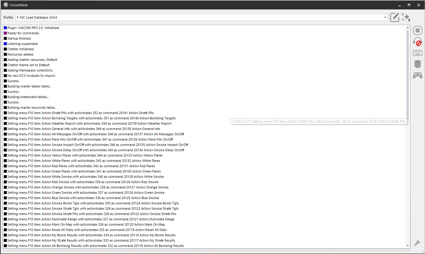 What’s more harry than a Harrier? The Marine sitting in it! With this VoiceAttack Profile get that Marine into shape with commands such as “prepare for landing”, “stores page left”, “air to ground mode”, and more than 900 unique commands! Use it, or lose it! Well, in this case, use as much of the VoiceAttack profile as you like. Want to take control of a harry situation once in a while with “gear down”? Or maybe go full Oorah by tuning the radio, Tacan, AWL mode, telling crew chief to hand over the visor, and performing a wet vertical takeoff all at once? It’s all in your hands, er, voice.