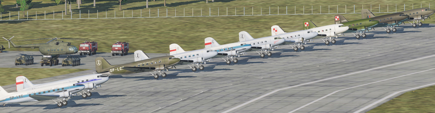 13 skins for various DC-2, DC-3, C-47 and Li-2 variants, used by various Polish operators. It works with mod, released by Markindel, Stonehouse and Topergood.