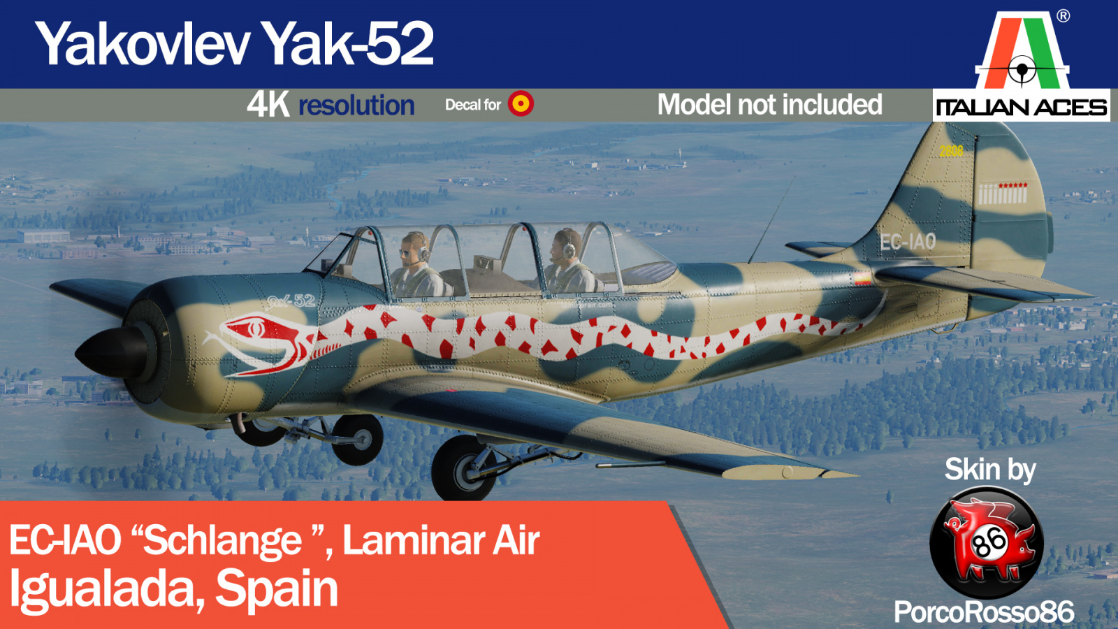 Inspired by Yugoslavian Air Force Soko 522 SN 60134 now located in the Museum of Flight in Belgrade. I hope you like the livery, feel free to rate it :) To install open up the RAR file and from it drag and drop the folder into your C:\Users\User\Saved Games\DCS.openbeta\Liveries\Yak-52 folder (if you don't have one create one) or into Disk:\DCS World OpenBeta\CoreMods\aircraft\Yak-52\Liveries\Yak-52 and enjoy :) As always have a safe and pleasant flight!