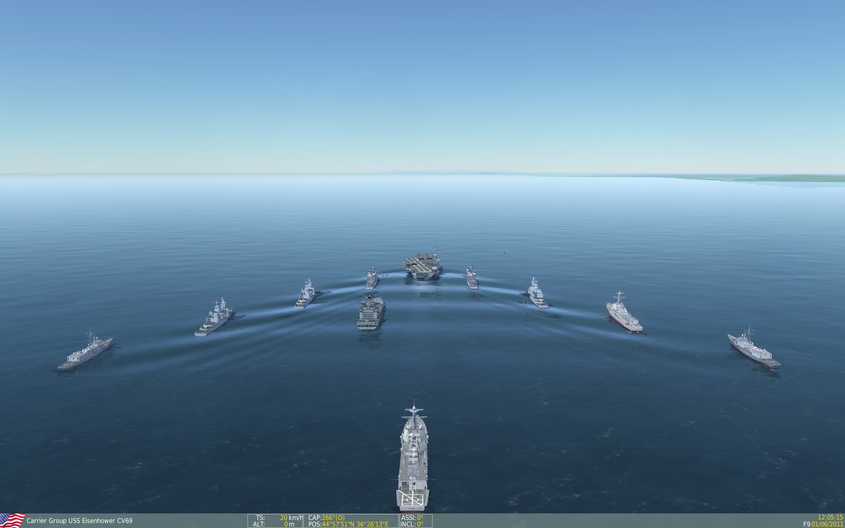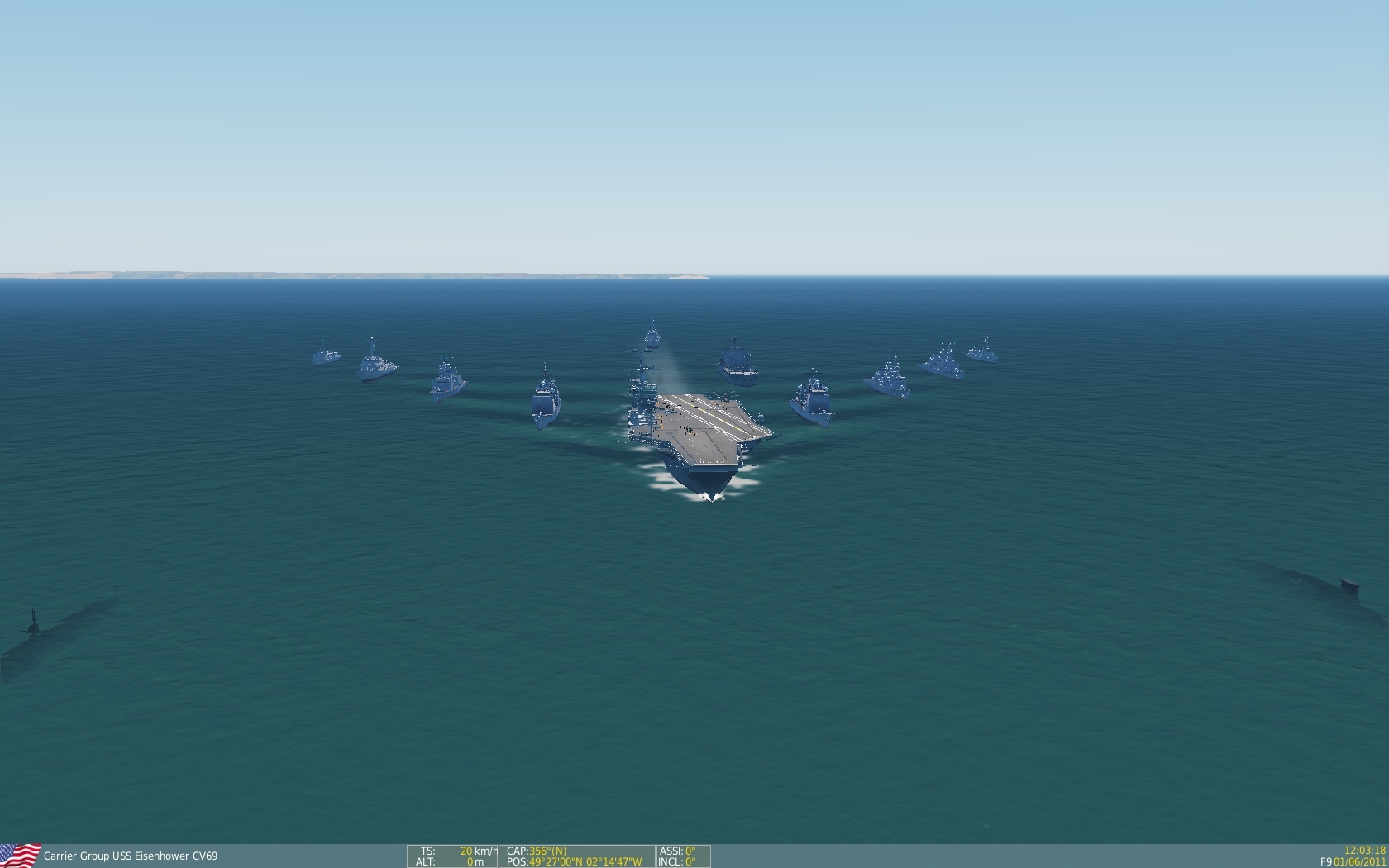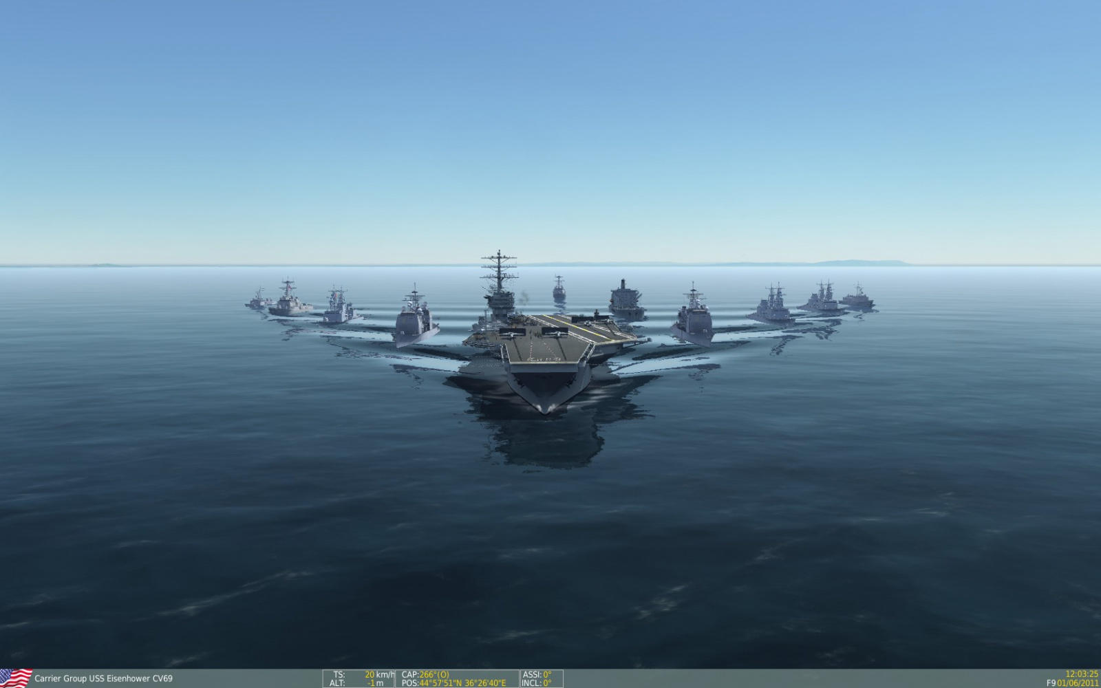With a click in the Mission Editor you have all the 'Carrier Group USS Eisenhower CVN-69', the USS Eisenhower is fully functional, its escort is a scene that makes it even more immersive. A known phenomenon, seen from a certain angle some boats other than the aircraft carrier can disappear but reappear very quickly. A second mod that should please our American friends.