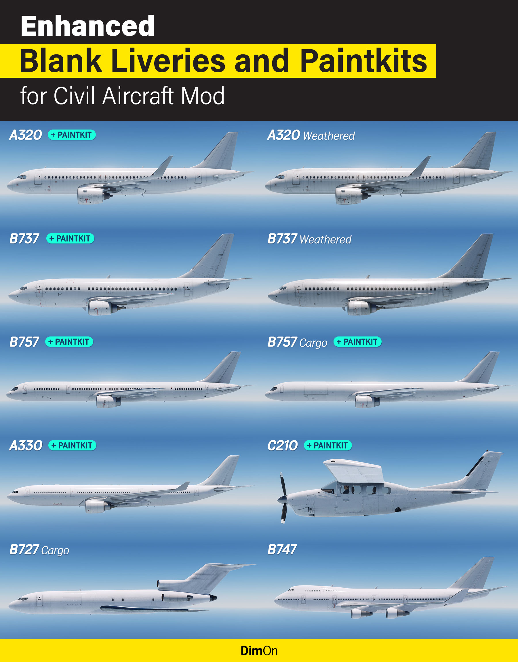 Nearly 40 highly accurate repaints, including: United Airlines, Air Busan, Air Seoul, Asia Pacific, Asiana, China Airlines, Continental, Japan Airlines, Jeju Air, Jin Air, Korean Air, Philippine Airlines, Skymark, T'Way Air, Star Marianas Air, and a plentiful of Cessna skins.