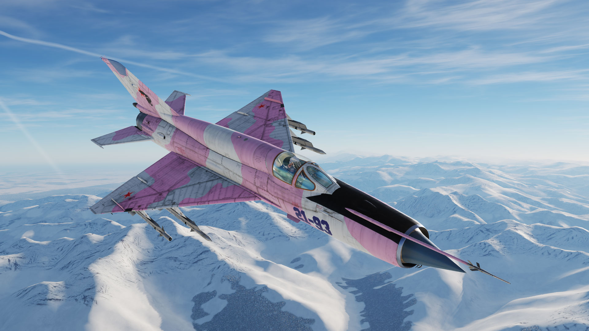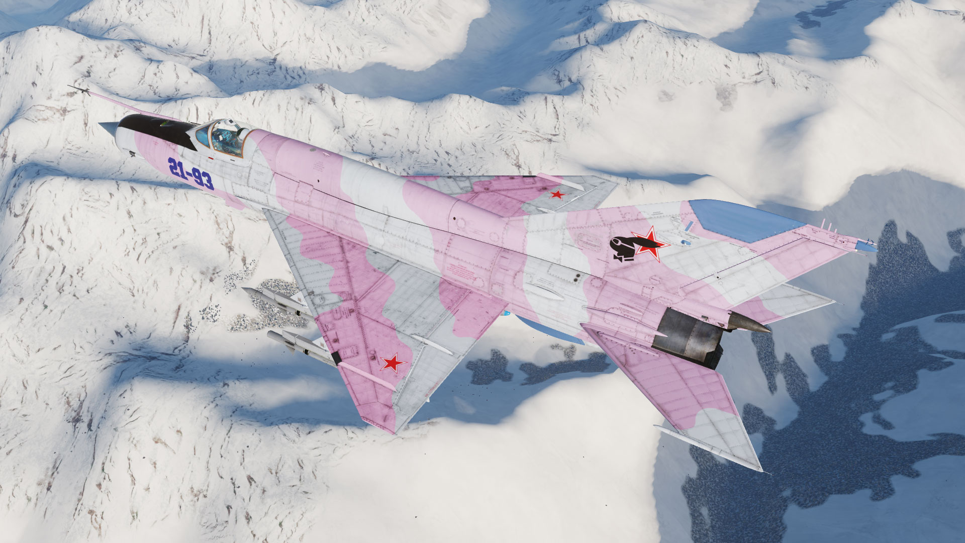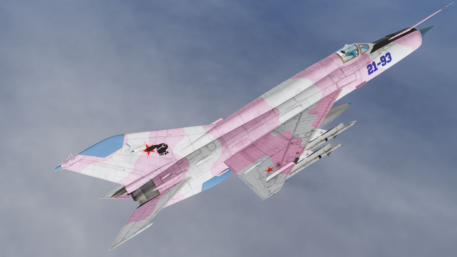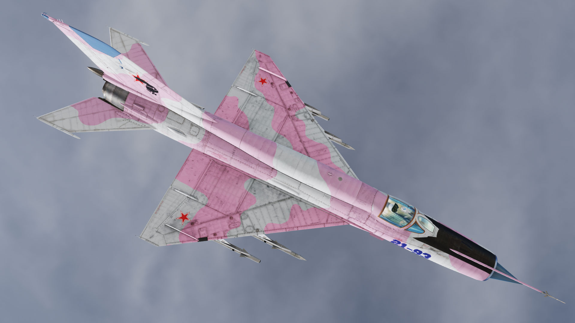 Suite à une mise à jour des fichiers de textures dans le simulateur pour cet appareil, mes textures ne fonctionnaient plus. Je vous propose de nouveau cette version repeinte du Mig 21 mais avec une peinture particulière pour le fun. Surprise ! ^^