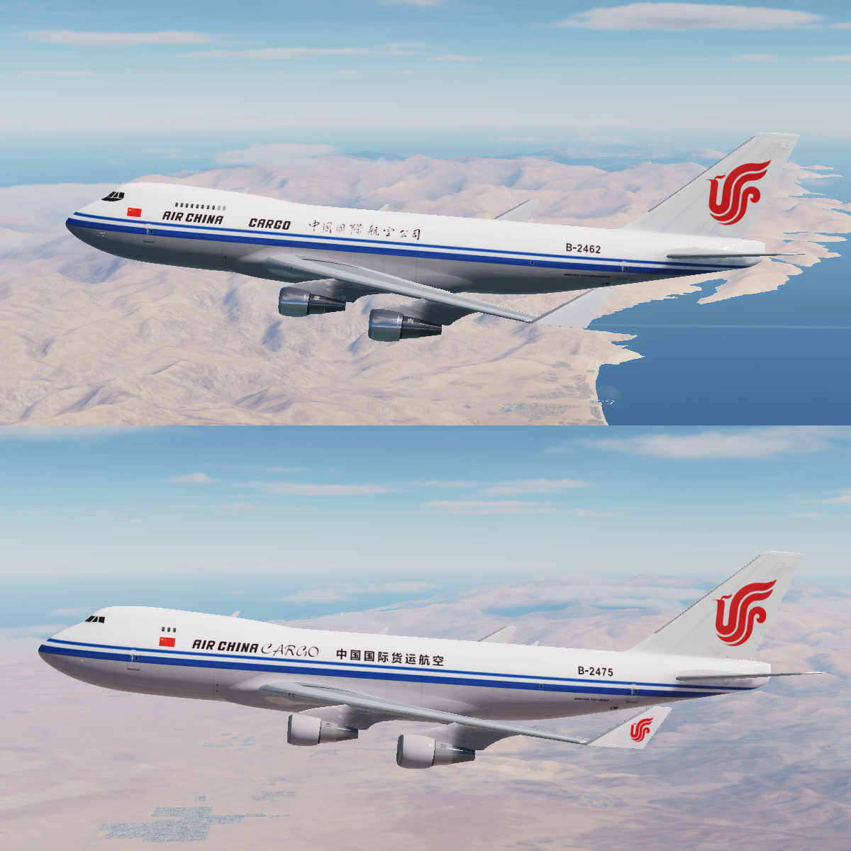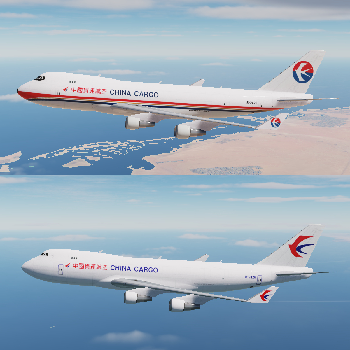 Boeing 747 People's Republic of China skinpack --- CAAC (中国民航) / Air China (中国国际航空) / China Cargo Airlines (中国货运航空, the subsidiary of China Eastern Airlines (中国东方航空)) / China Southern Airlines (中国南方航空) --- total 4x airlines' 8x skins.