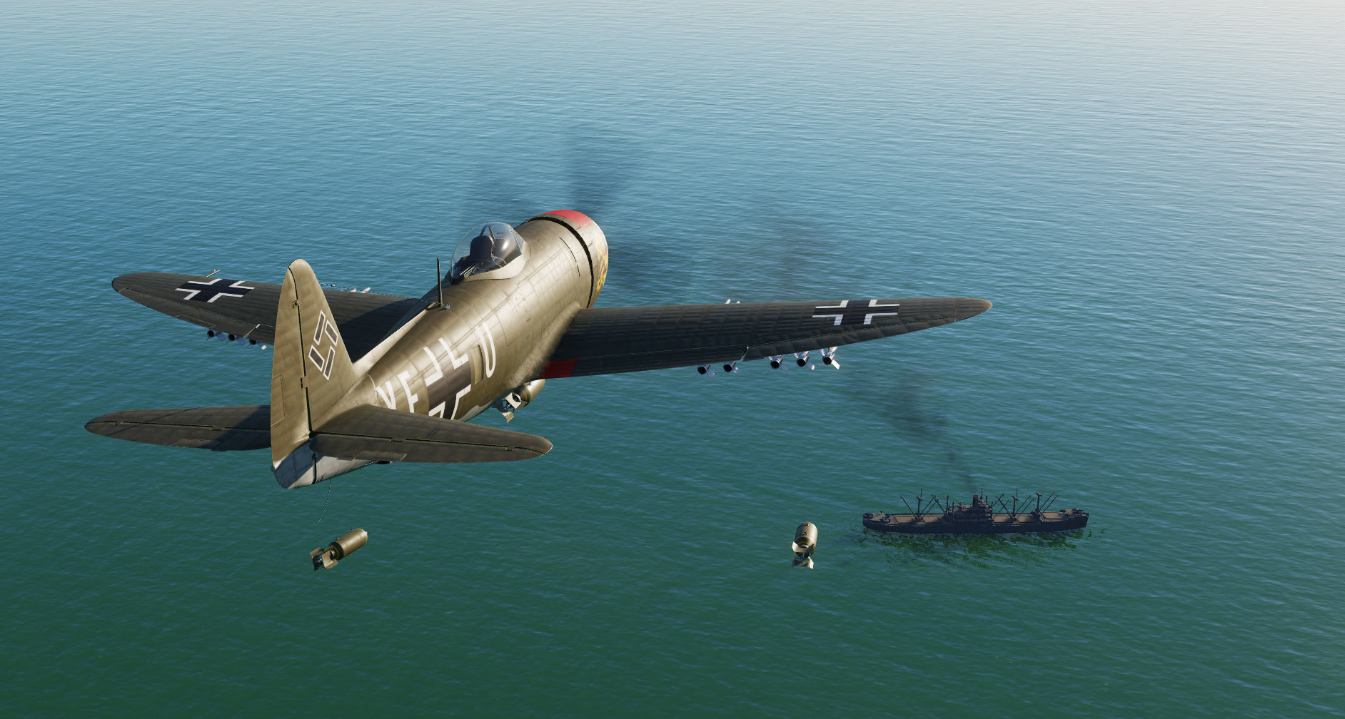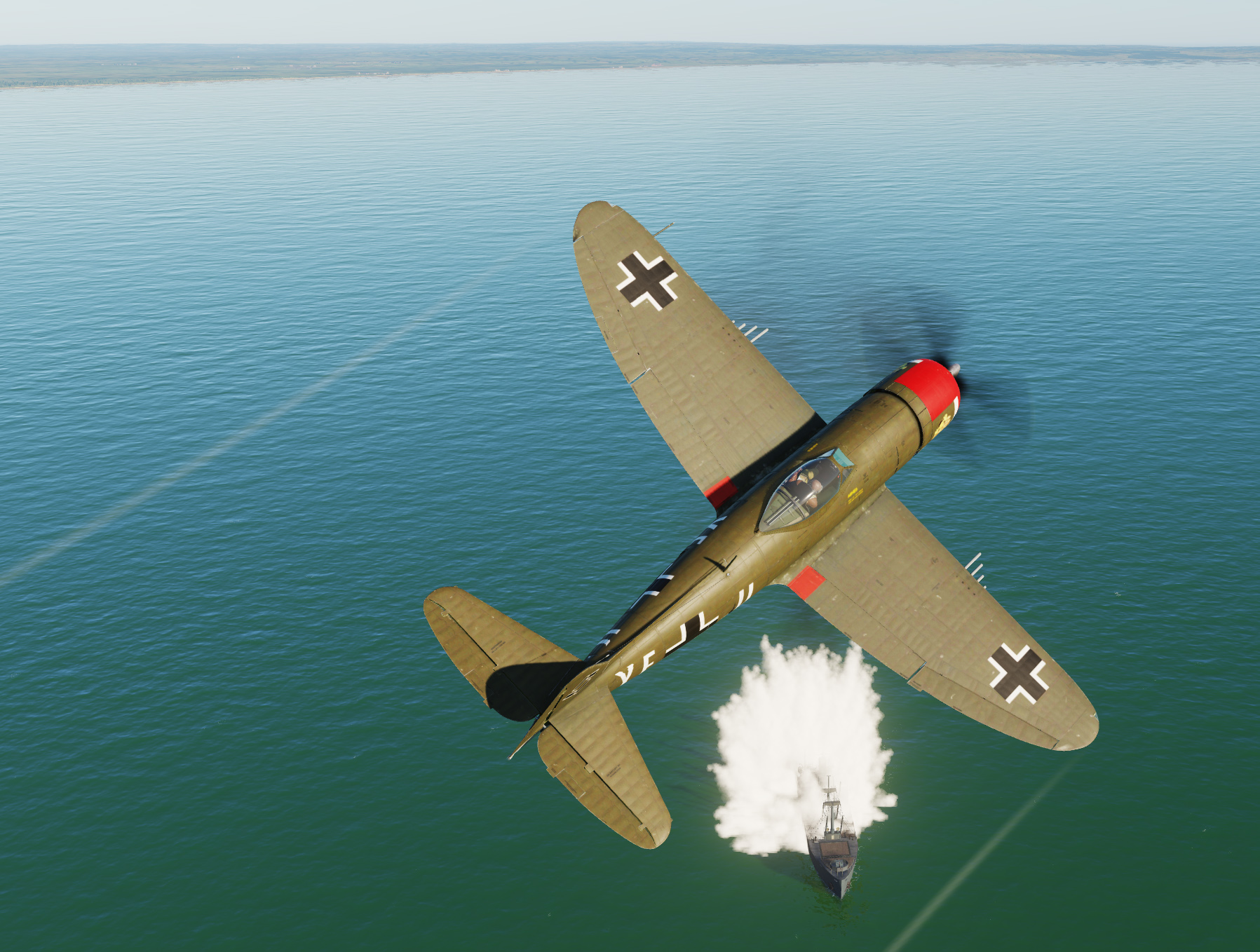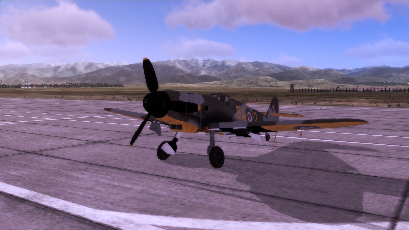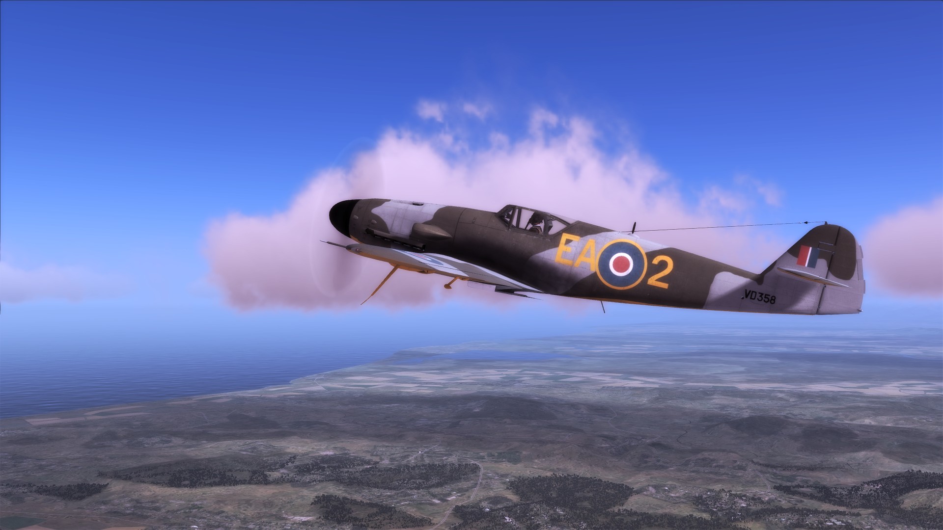 A Royal Air Force FW190 A-8 skin based on captured FW190 PE882 of No. 1426 Flight Royal Air Force, in early war dark earth camo (later war ocean grey camo skin is included in the module).