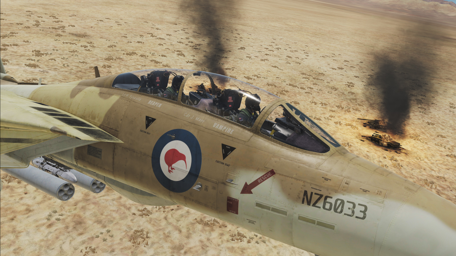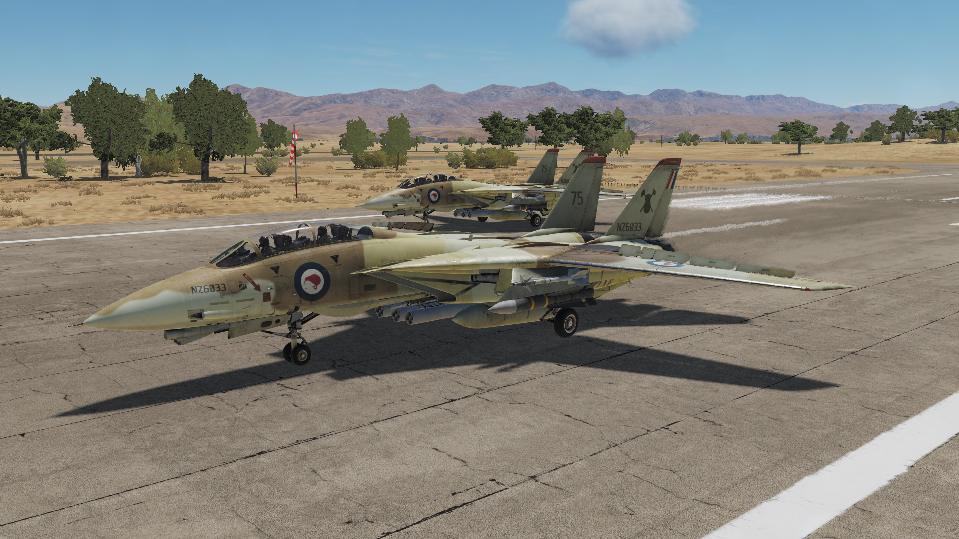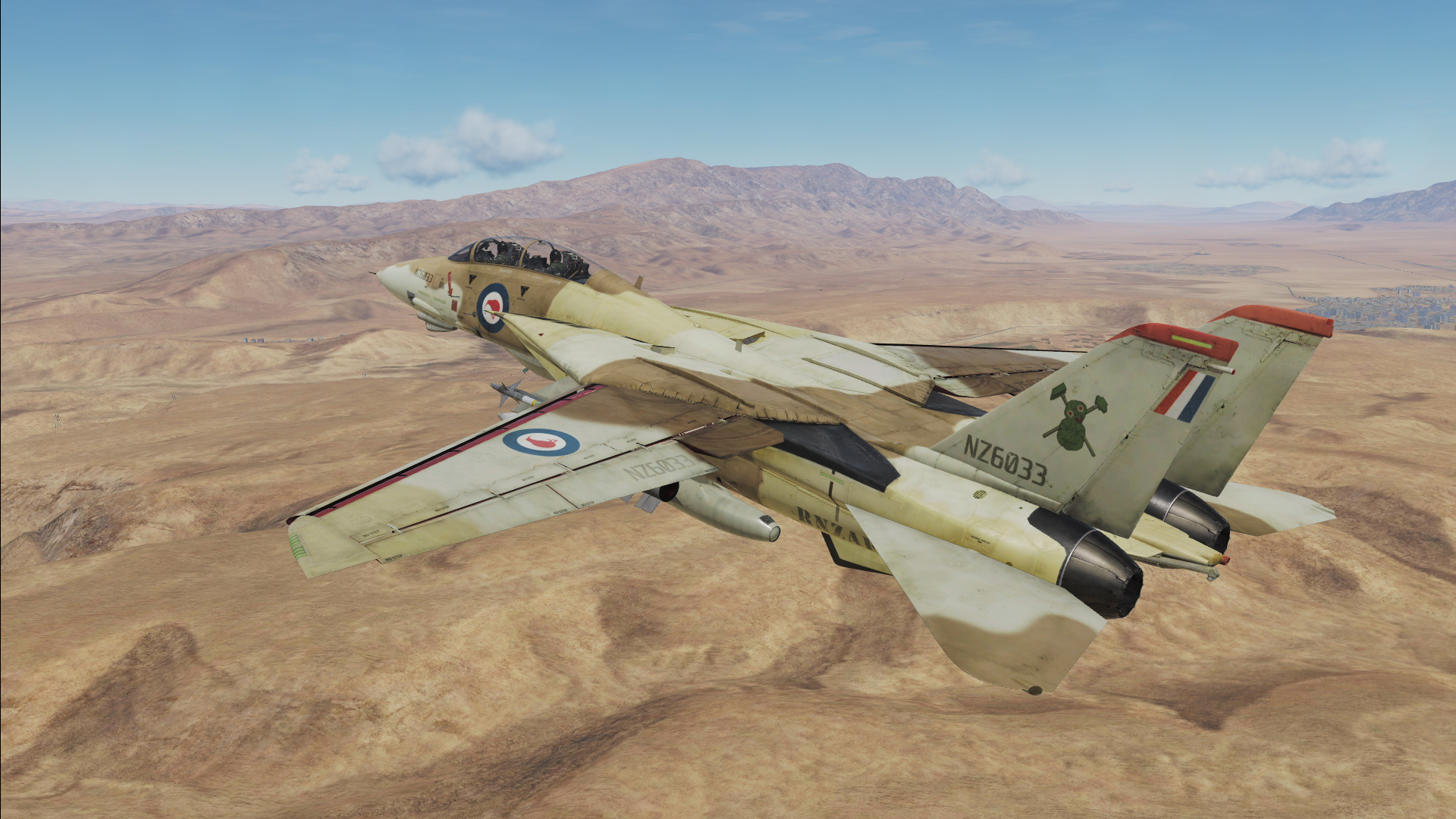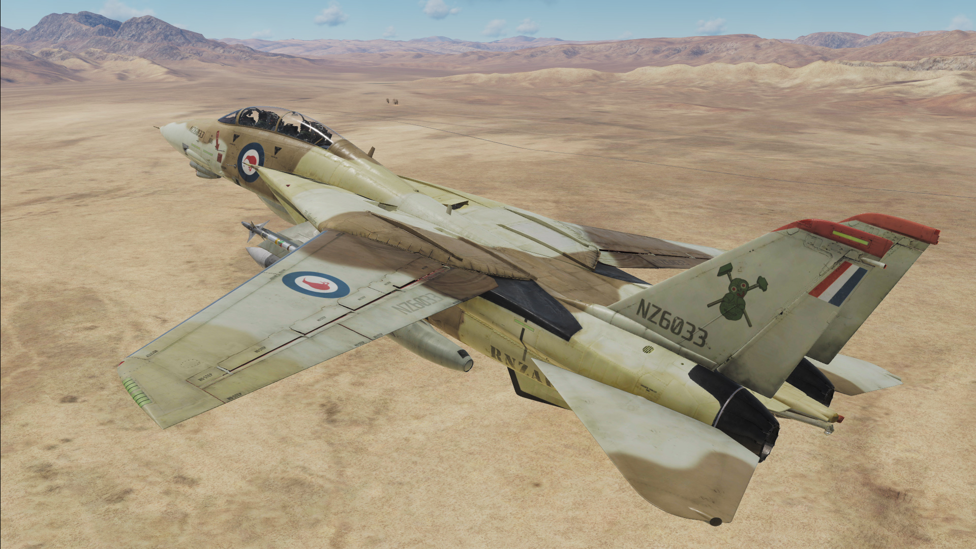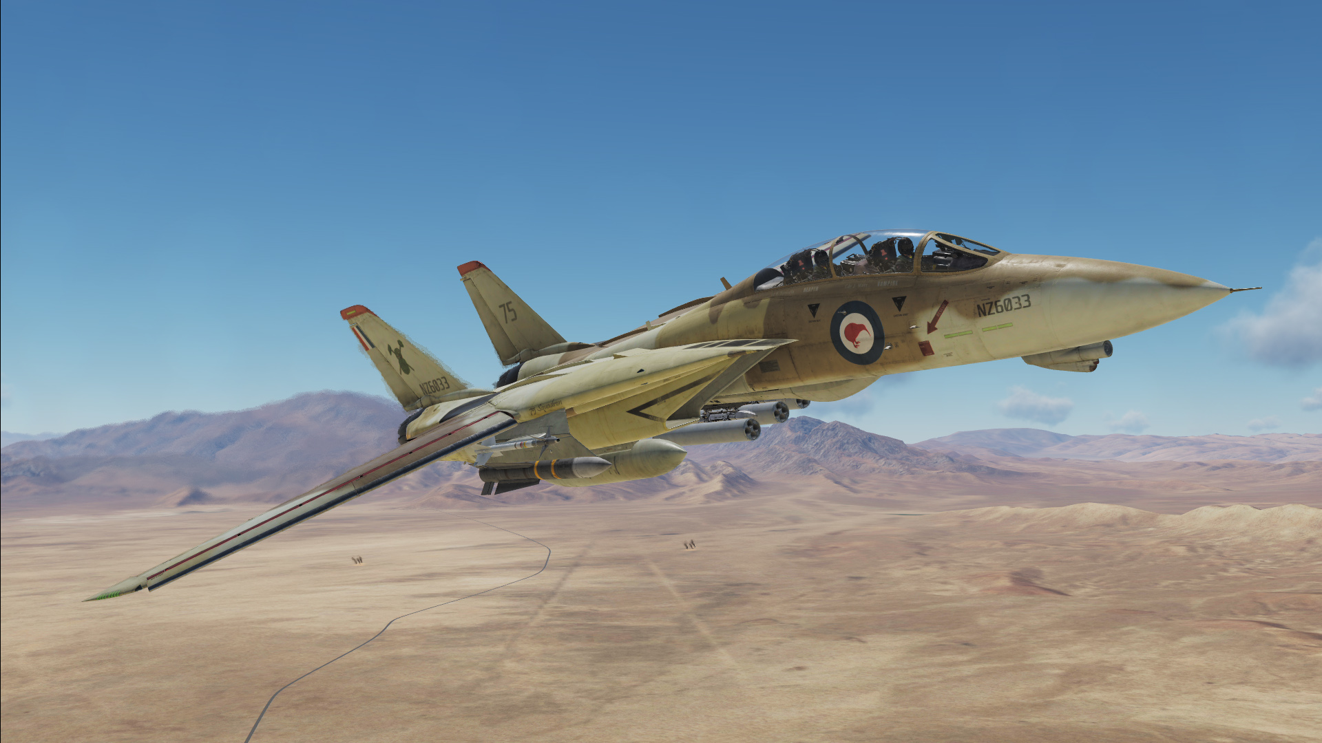 Fictional RNZAF (Royal New Zealand Airforce) F-14B of 75 Squadron in Desert camo.