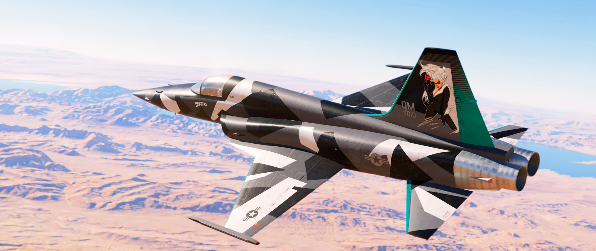 Fictional highlighted winter splinter camo skin featuring PBR'd "Black Cat" tail art
