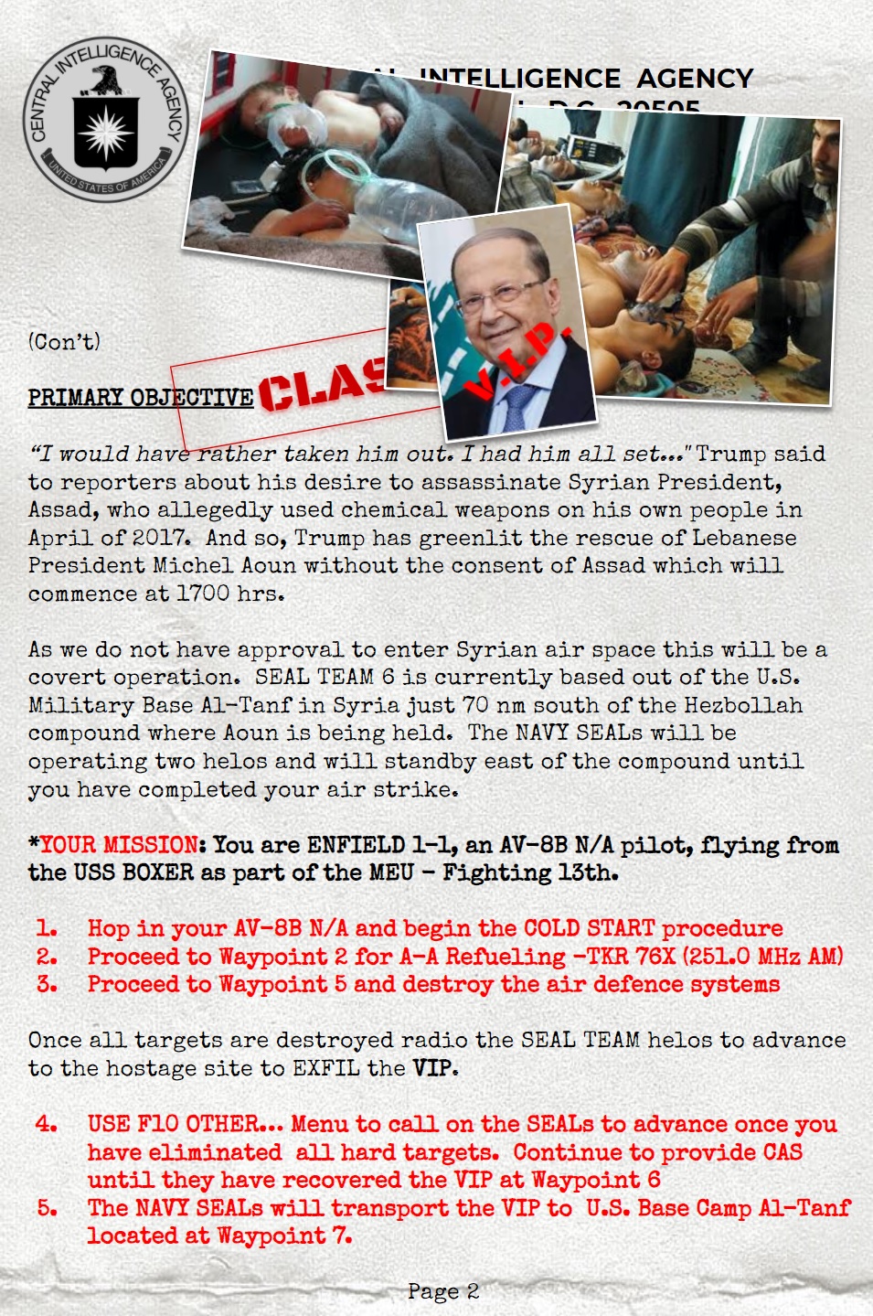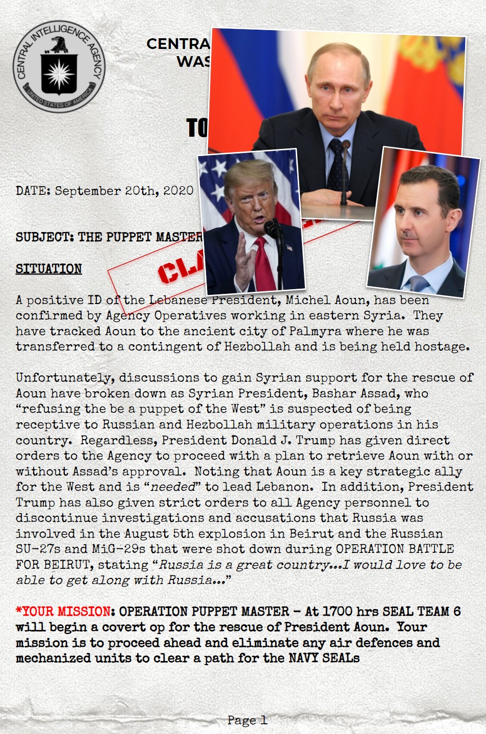 Following the events of the last episode in THE PUPPET MASTER, the Lebanese President Michel Aoun has been returned to his home country but the rescue involved an unauthorized entry into Syrian air space.  Syrian President Bashar Assad vowed to retaliate and is now sending forces to attack and destroy the U.S. Military Garrison at Al-Tanf.