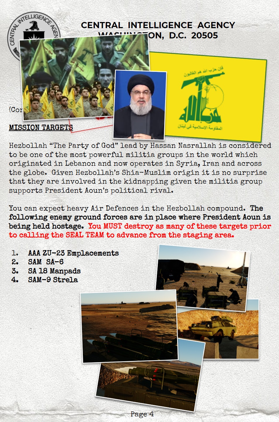 Following the events of the last episode in THE RIVER RUN, the militia groups have been driven out of the city and the remaining forces in the mountain valleys have been routed out following your excellent work with the laser guided rockets.  However, your work is not yet finished and you are now being called on again as the kidnapped Lebanese President Michel Aoun has been located.