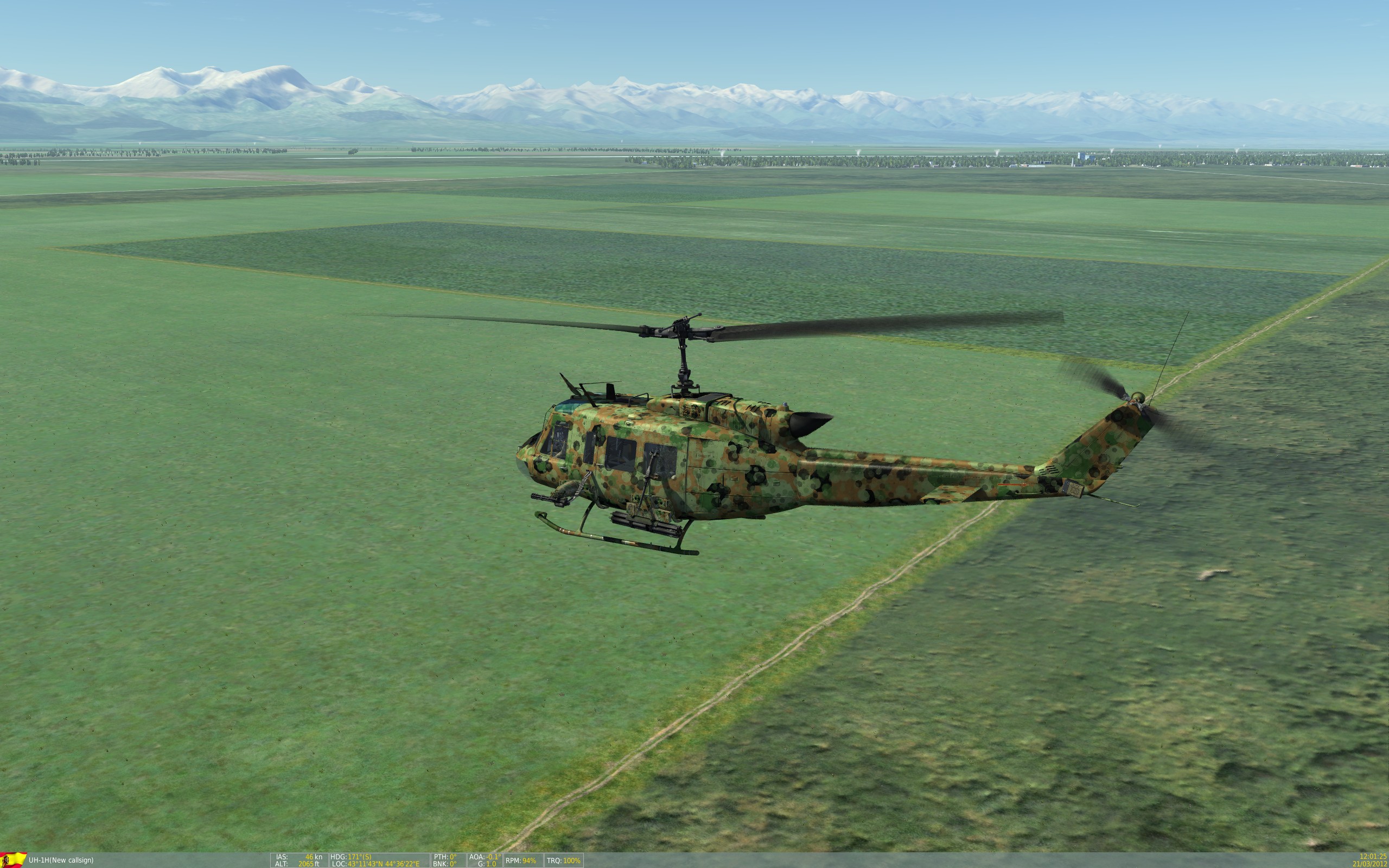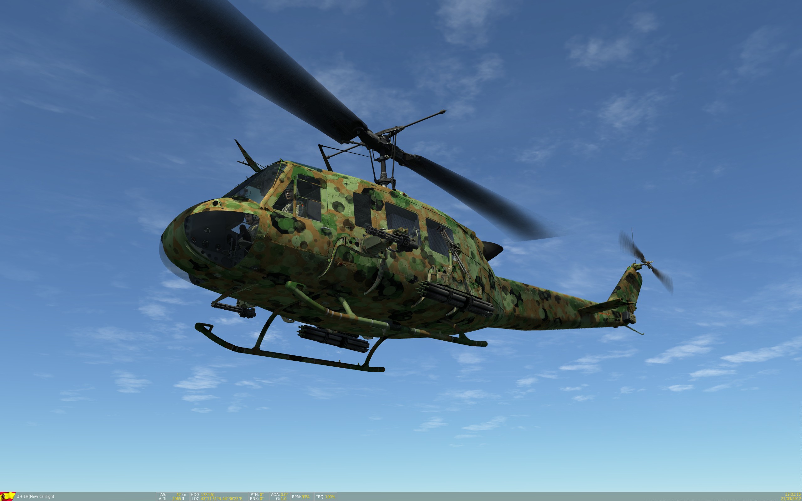 Skin featuring the Hyperstealth SFW Camo designed for Jordan Army over an UH-1H with no markings.