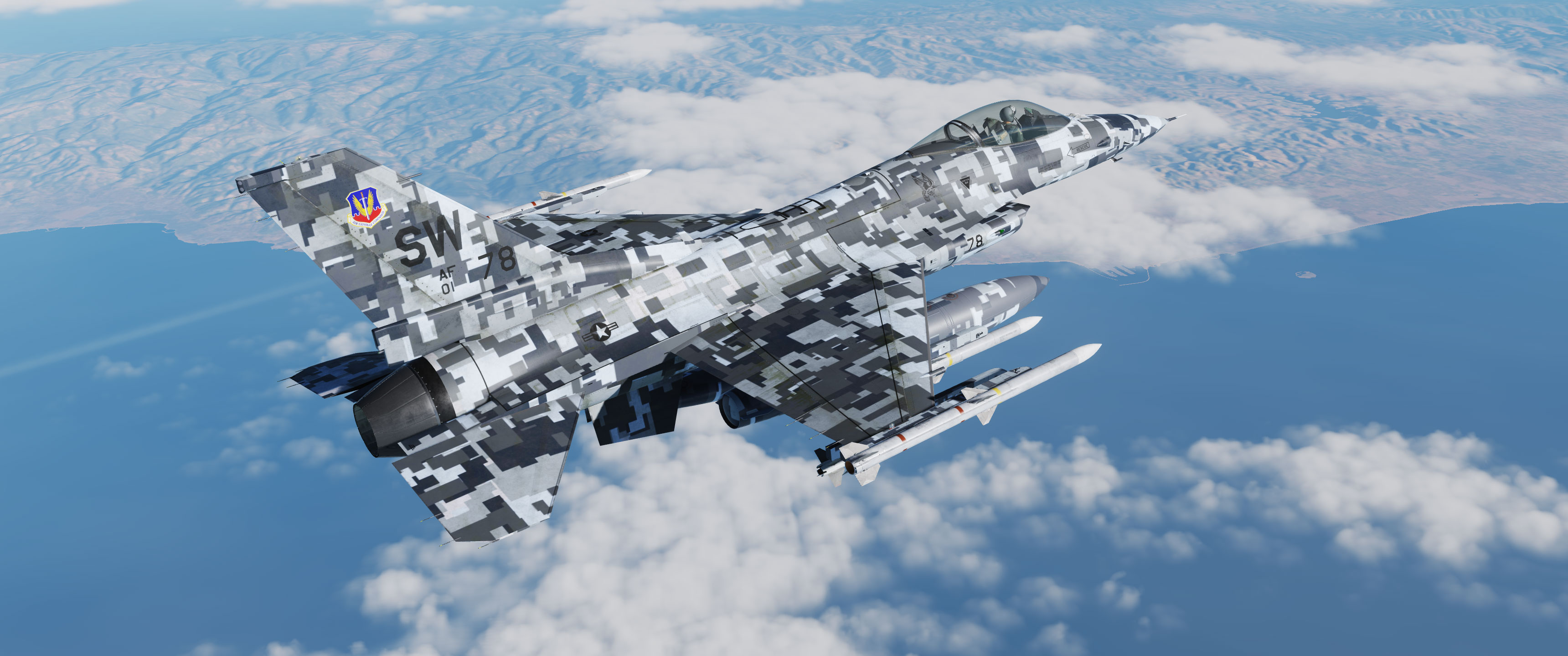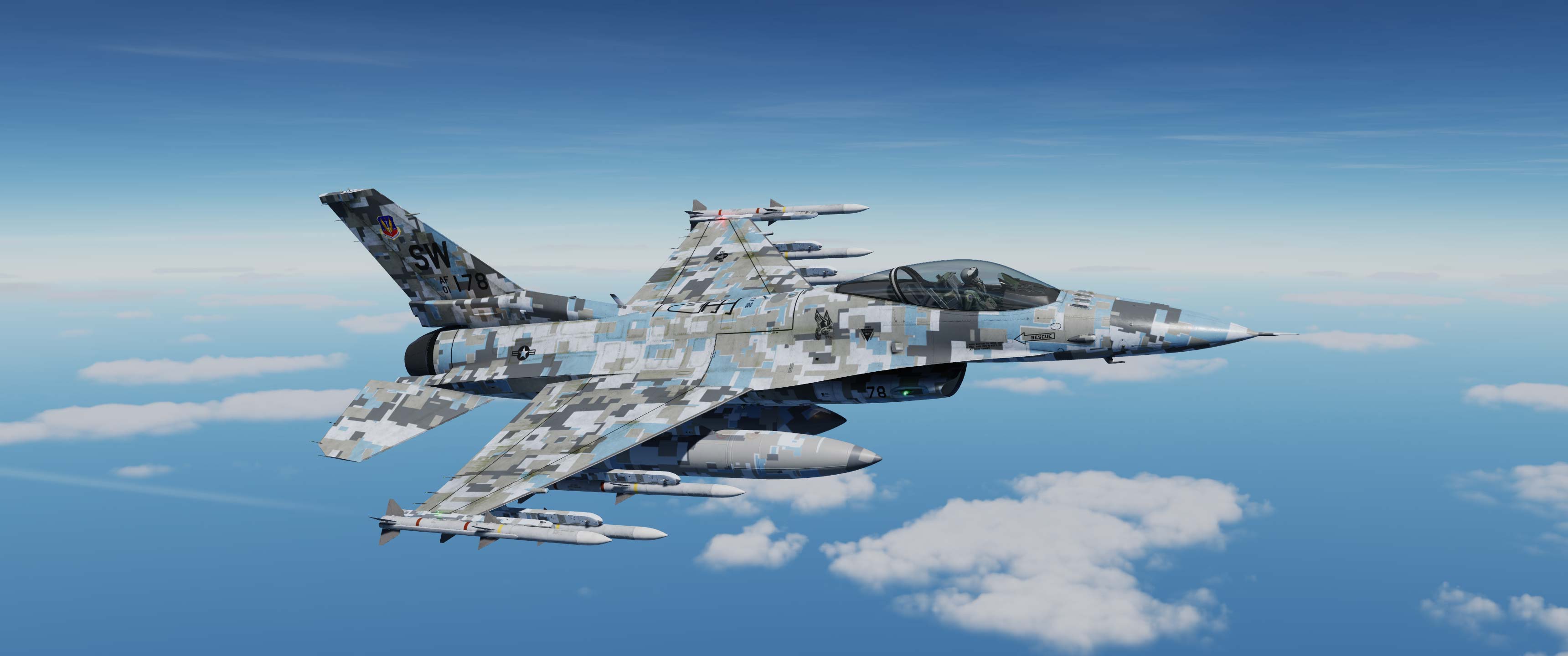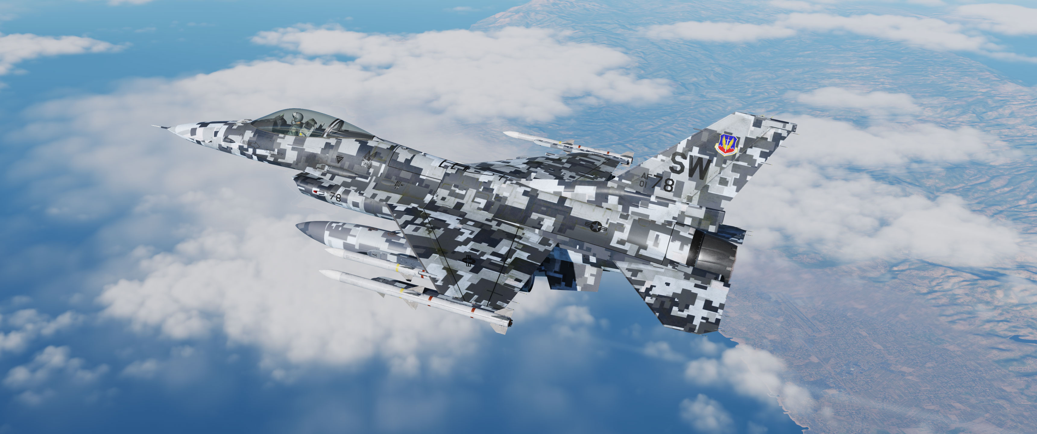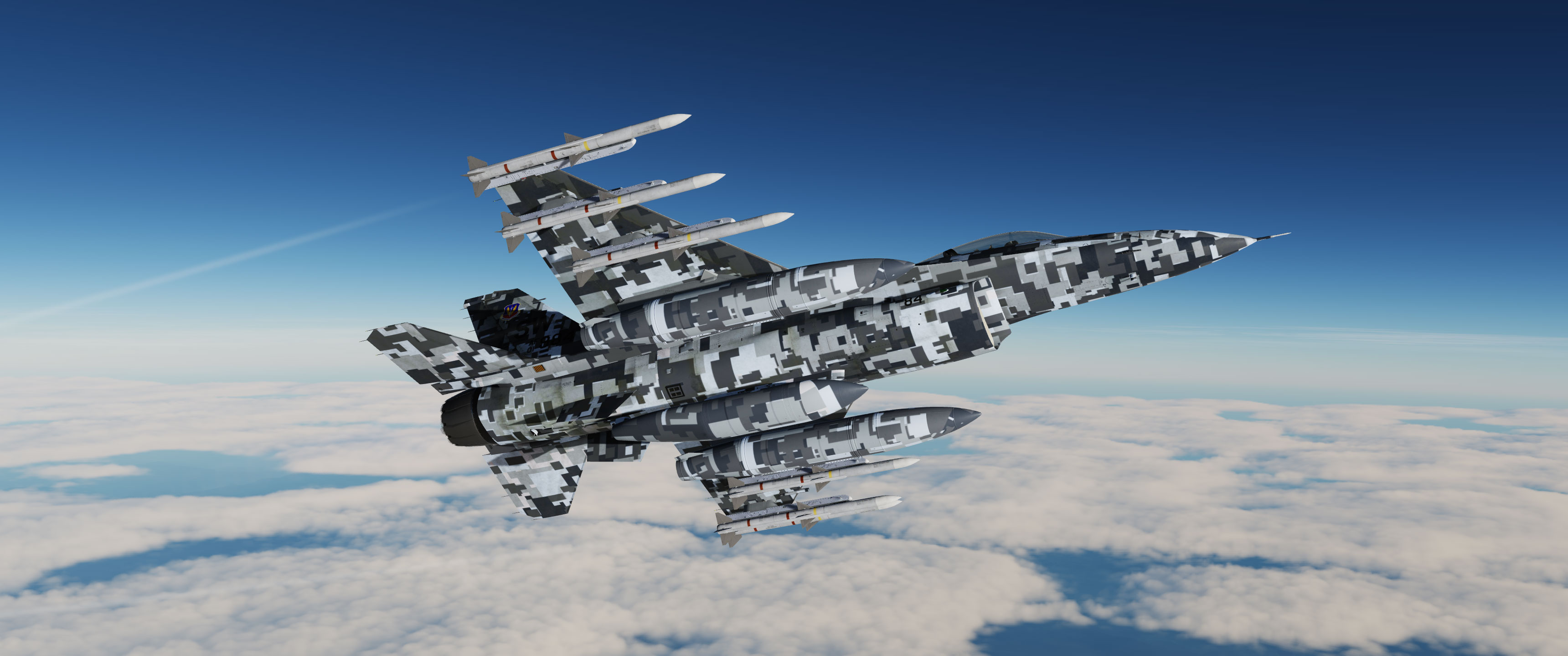 Suite à une demande d'un membre de la communauté DCS, voici mon camouflage gris digital provenant du A-10 et du F18, mais cette fois-ci, adapté au F16.