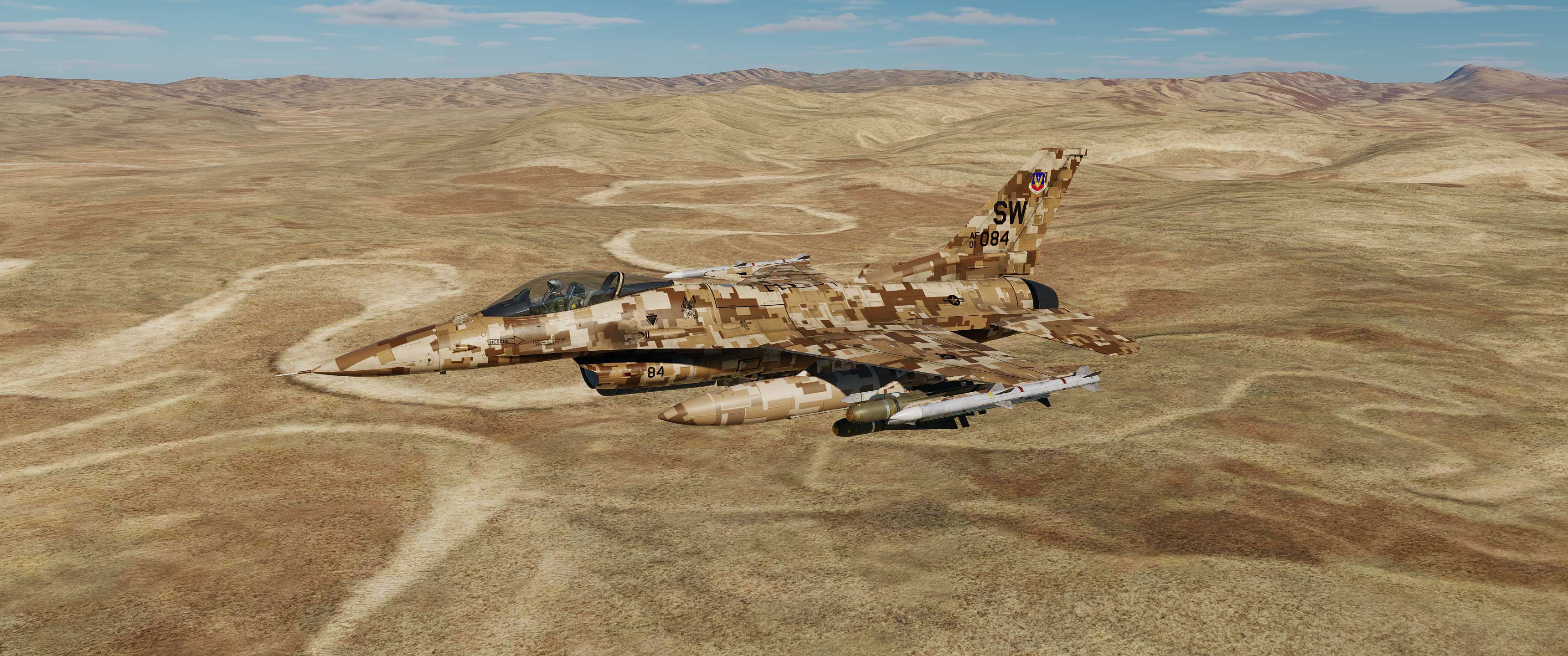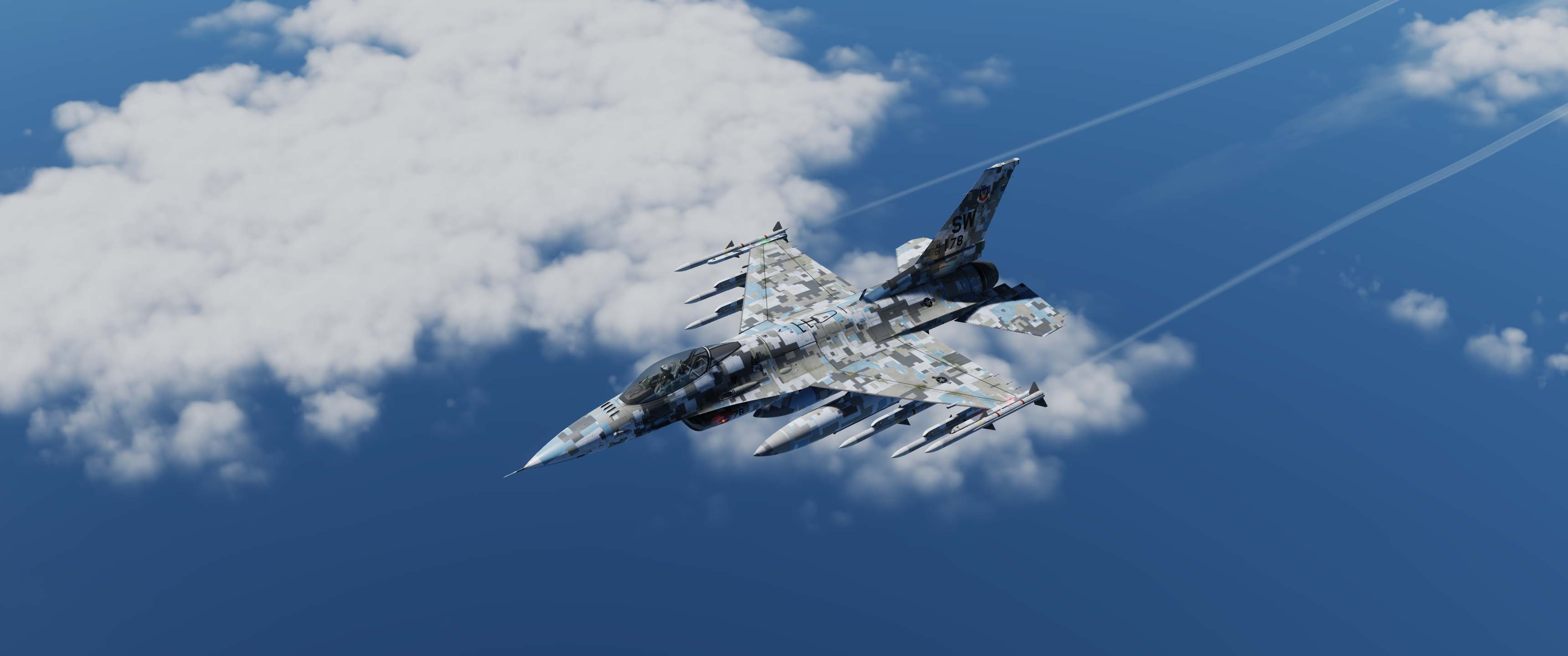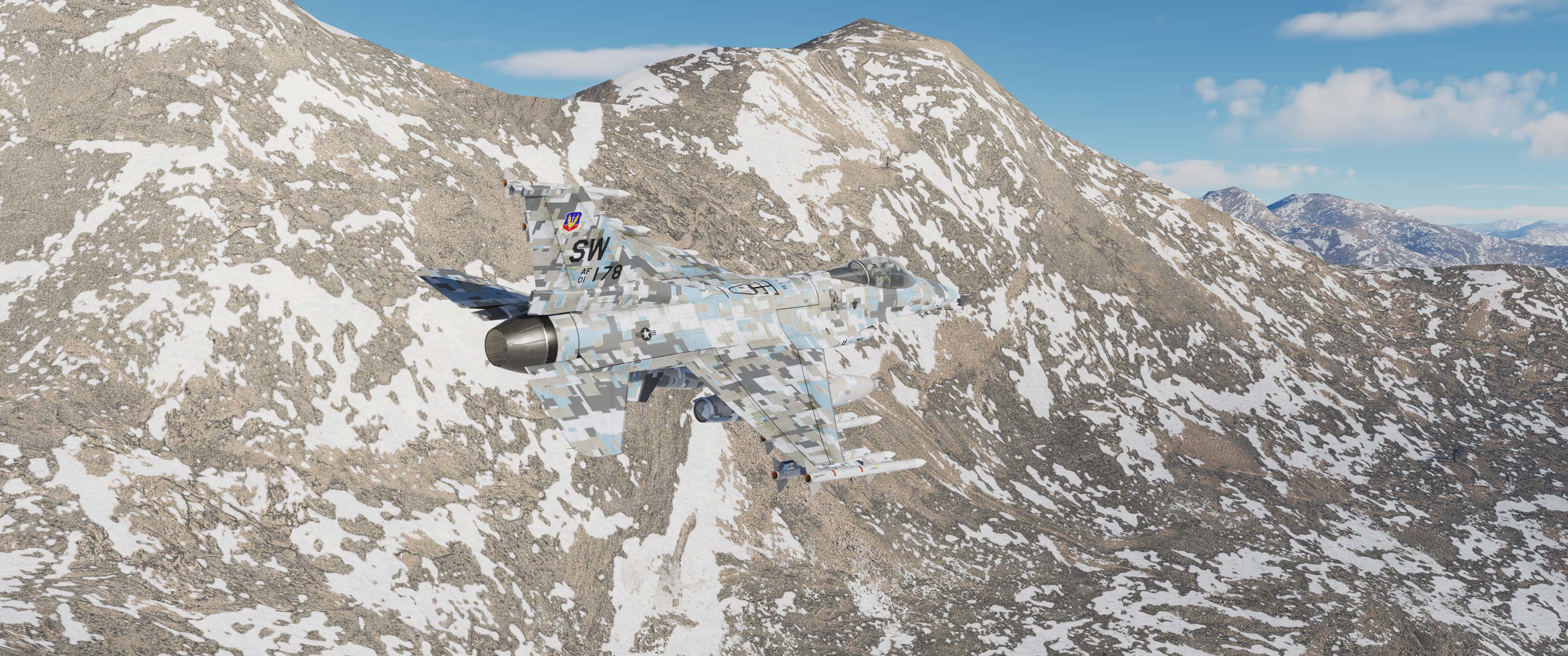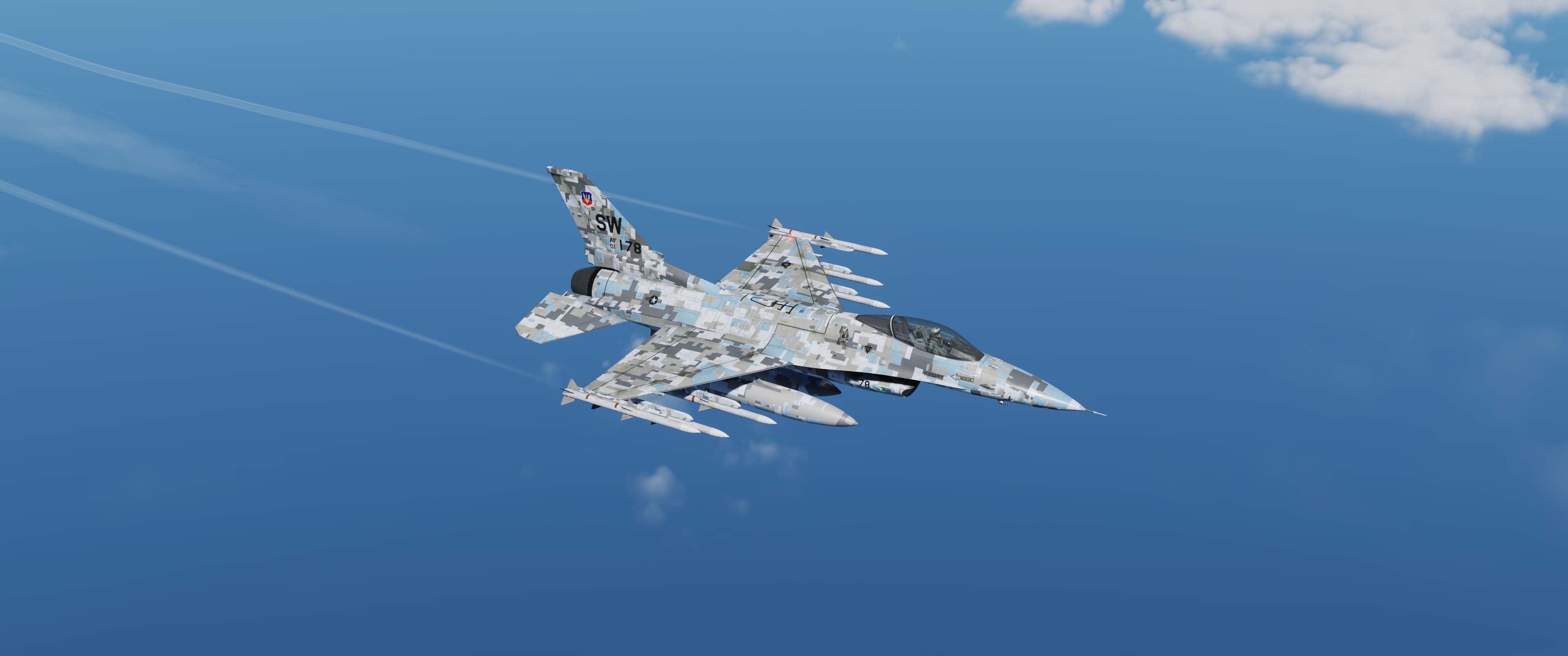 Suite à une demande d'un membre de la communauté DCS, voici mon camouflage gris digital provenant du A-10 et du F18, mais cette fois-ci, adapté au F16.