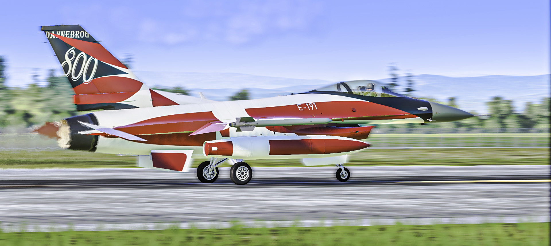 After great teamwork between me and Kenneth, I am glad to announce the release V3.1 of E-191 from the Royal Danish Airforce (RDAF) aka. "Dannebrogs 800-years anniversary". The livery is not perfect, but most parts are correct. Enjoy the livery and fly high!