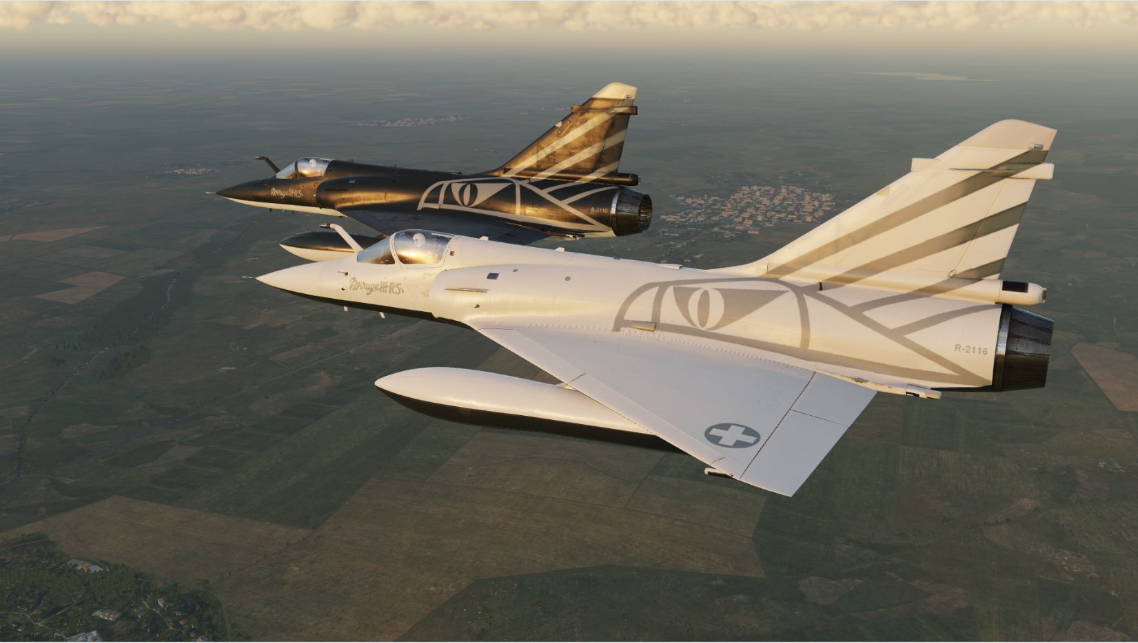 this is a pack with the R-2110 and R-2116 real swiss air force mirage 3 RS skin for the Mirage 2000C