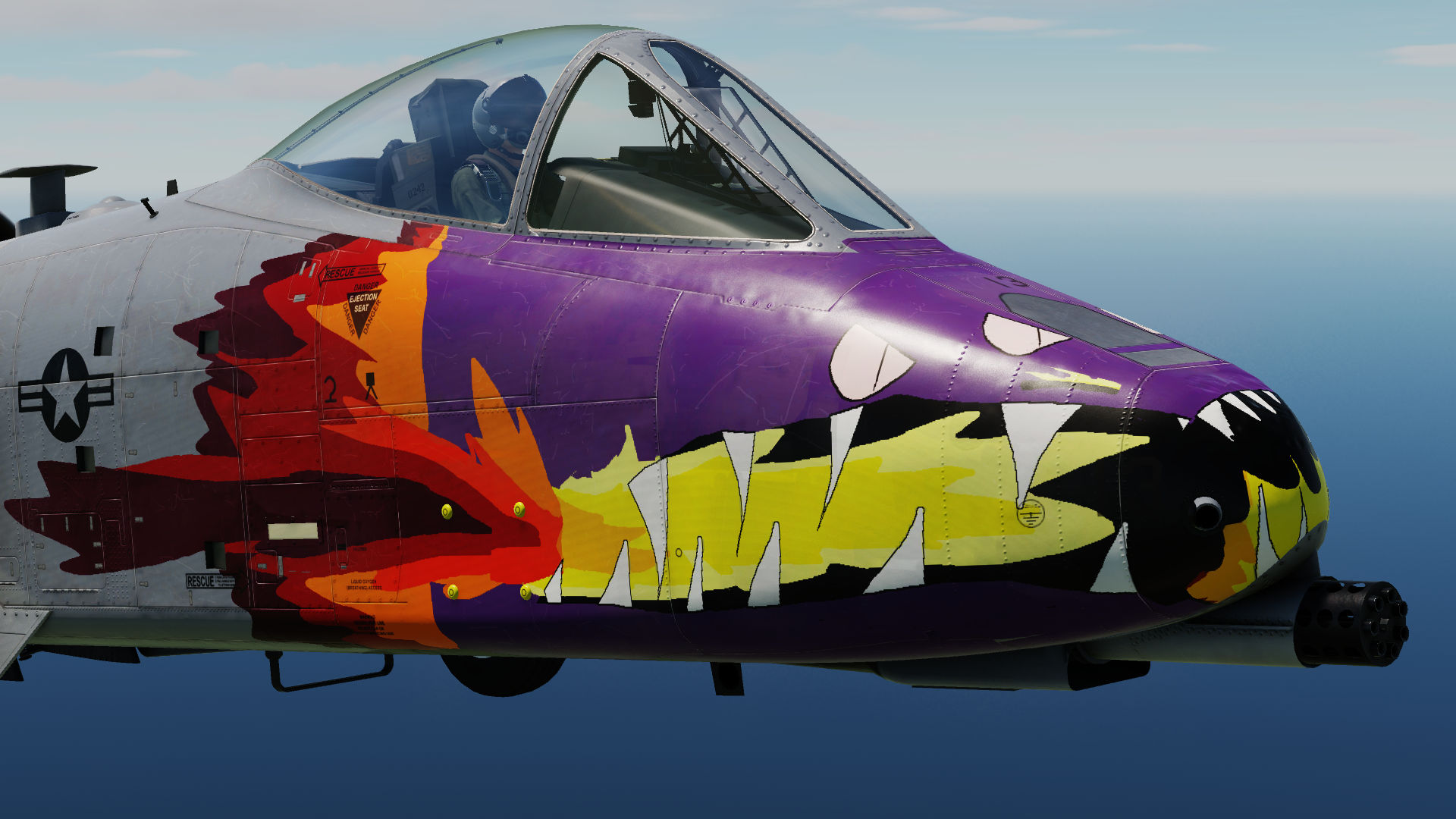 Show your might in the DCS A-10A (FC3), A-10C and A-10CII with 4 colourful nosearts! Lizard Green, Hot Blue, Red Ice Breath and All Seeing Purple!