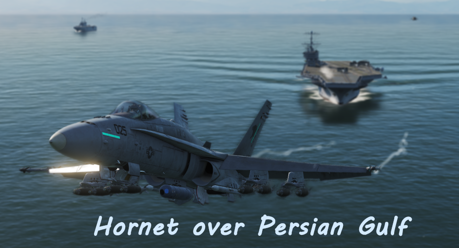 Hornet over Persian Gulf SuperCarrier using Mbot Dynamic Campaign Engine modified by Miguel21. Fly the Hornet in an immersive dynamic system which will record your destructions and losses. Each mission will be different with SEAD, CAP, STRIKE, ESCORT, ANTI-SHIP STRIKES, INTERCEPTIONS, etc... Your Fleet will support you with S-3 Tankers, E-2D Hawkeyes, F-14B Tomcat and many other fighters and bombers.  Solo play needs supercarrier module but TF-74 with Stennis is available for MP (Hornet and Tomcat)
