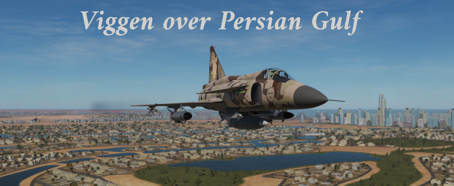 Viggen over Persian Gulf using Mbot Dynamic Campaign Engine modified by Miguel21. Fly the AJS-37 Viggen in an immersive dynamic system which will record your destructions and losses. Each mission will be different with ANTISHIP and STRIKE missions. Allied forces will support you with AWACS and many allied fighters and bombers.