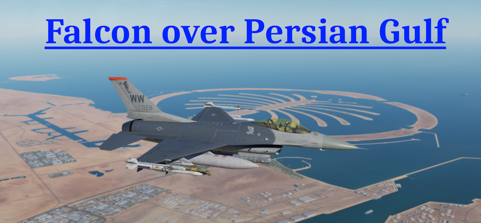 Falcon over Persian Gulf using Mbot Dynamic Campaign Engine modified by Miguel21. Fly the F-16C Falcon in an immersive dynamic system which will record your destructions and losses. Each mission will be different with CAP, STRIKE, ESCORT, INTERCEPTIONS, etc... Your Fleet will support you with Tankers, AWACS and many allied fighters and bombers