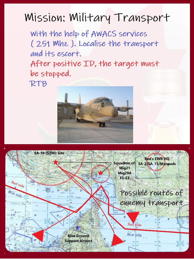 this is a dynamic template, not a mission! you will have to figure out in the mission editor what kind of mission you are going to fly, what your target will be, determine your loadout, and plot your navigation points. So, mission planning has yet to be done.
