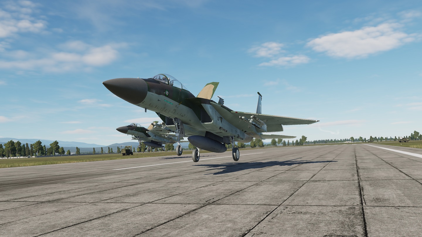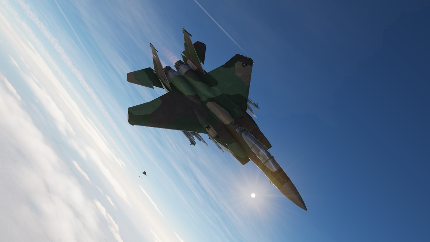 A skin depicting the F-15As and F-15Cs operated by the USAF Fighter Weapons School F-15 Division from the late 70s to the early 90s, prior to the switch to darker grey paint schemes.  The tail for this skin is dynamic, and coded 77-XXX.  Best used with the NTTR terrain.
