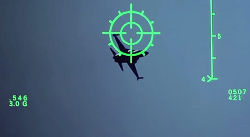 Dog fight an F-18 as a Iranian F-14 over Dubai.<br />