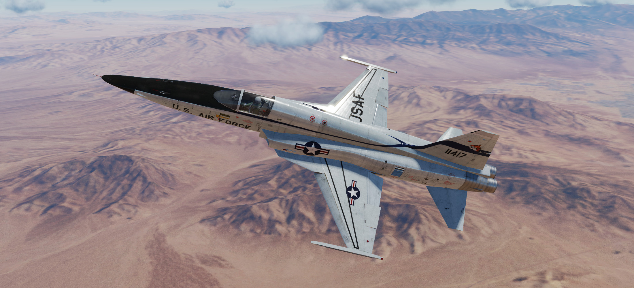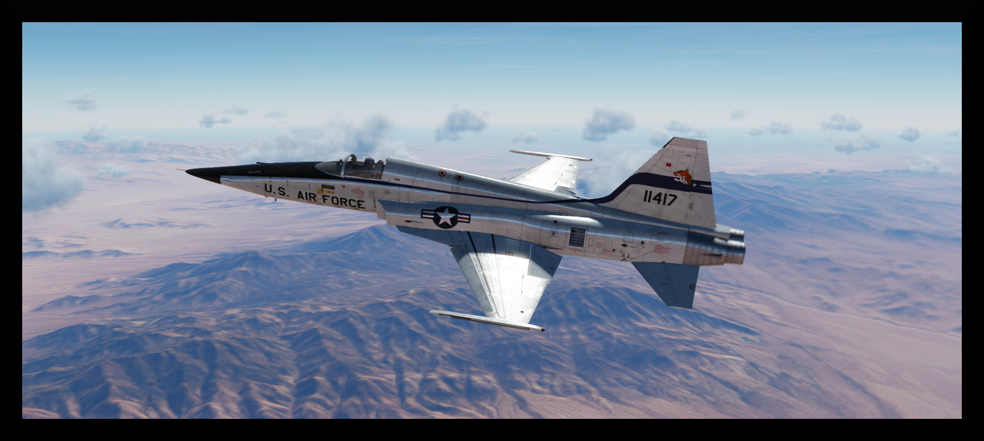 the F5 E  Tiger II Prototype 71-1417 roll out livery , USAF   -  unpack downloaded archive in \savedgame\DCS\Liveries\F-5E-3\     credit : made from official DCS template by Snowsniper 2018 April. Tested on 2.5 Caucasus / NTTR. have fun