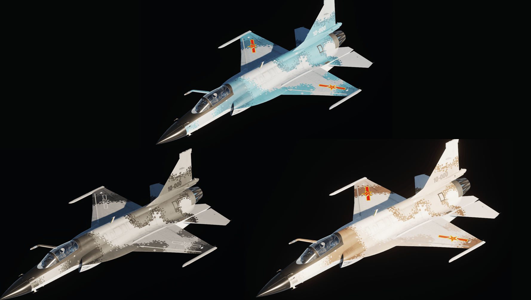 This is a livery pack consisting of 3 variants of Digital style camo inspired by various liveries in PLAAF markings.