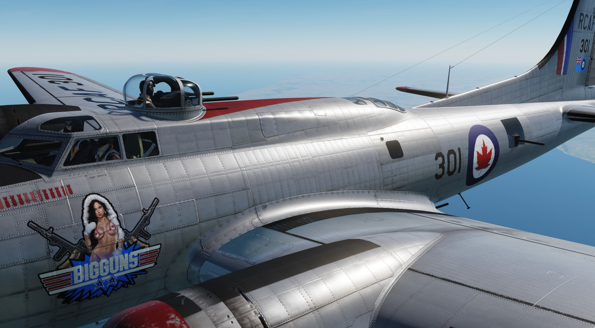 Serial number 44-83514, affectionately known as 'Buxom Babe' is a B-17G formerly operated by the Osean Air Force during the Osean War of the 1940s. She was initially accepted into service in June of 1944 with the 944th Bombardment Squadron, before being transferred into the 20th Bombardment Squadron 'Raiders', assigned to the Northern front against Belka. Buxom Babe would fly in 75 combat missions, along with 3 photo Reconnaissance missions before the end of the war.