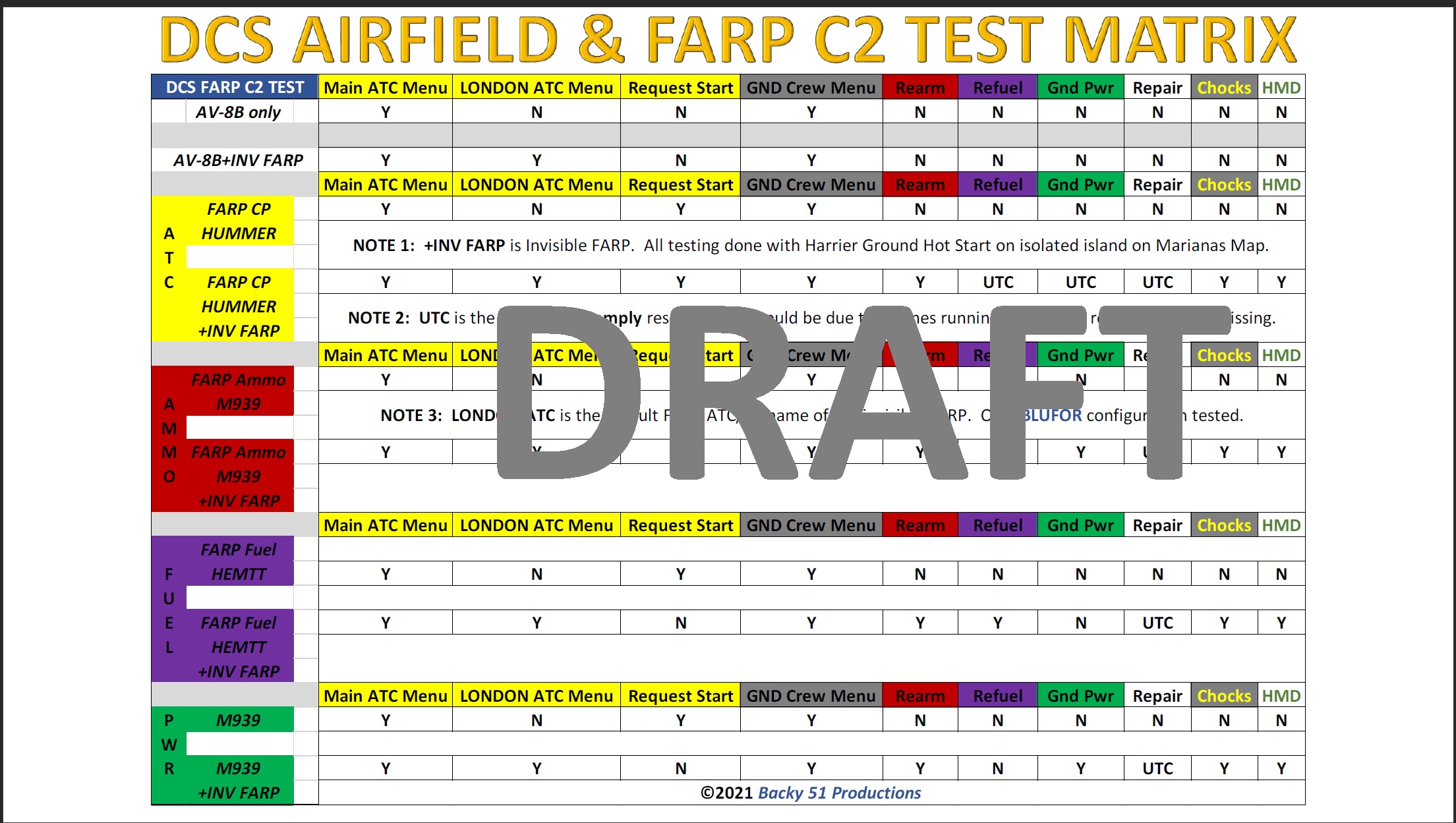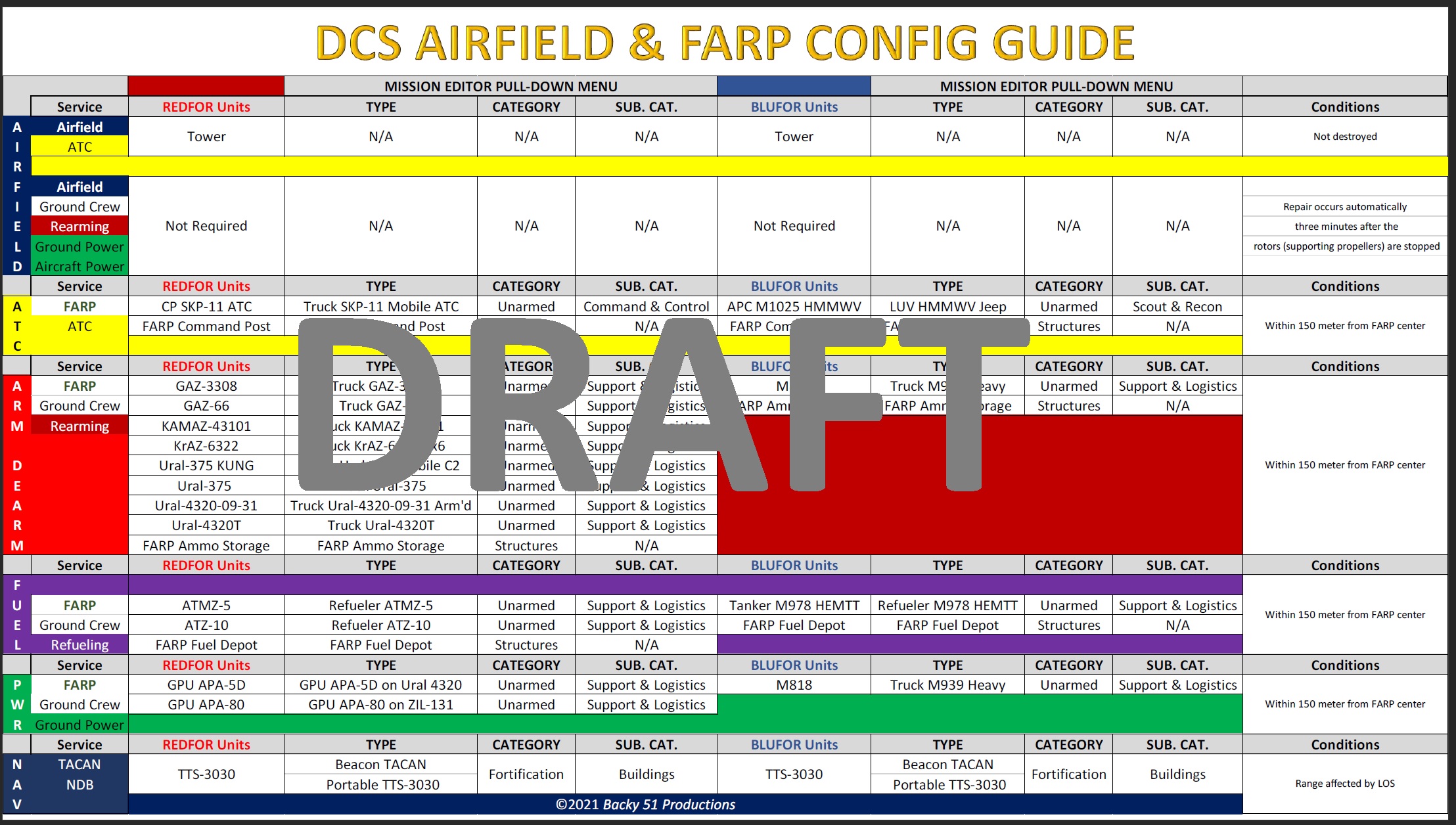 I created the DCS AIRFIELD & FARP CONFIGURATION GUIDE and C2 TEST document to assist mission builders with FARP setup in their missions.
